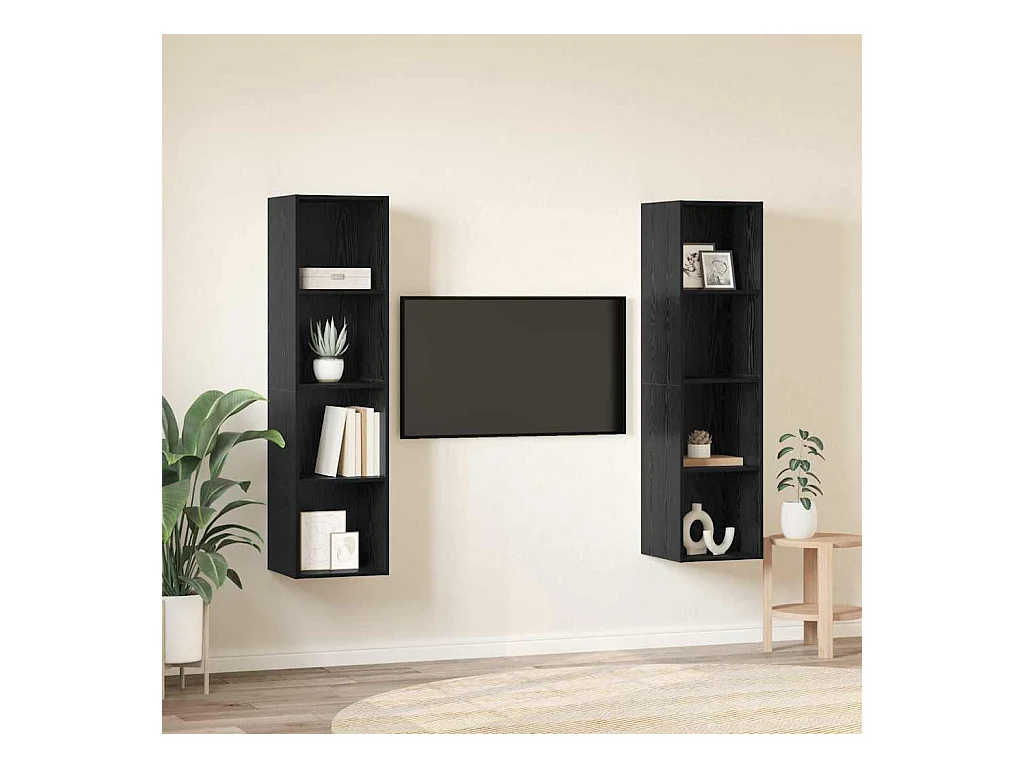 Mueble de TV | Mueble de salón de Pared 4 pcs Roble negro 37 x 37 x 72 cm