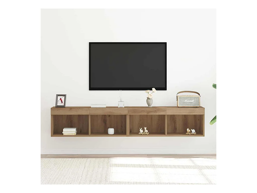 Muebles TV | Gabinetes de TV | Muebles de salón pared con LED 4 pzas madera ingeniería roble Sonoma