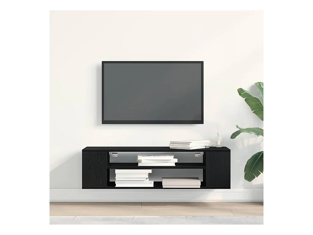 Mueble de TV | Mueble de salón colgante madera contrachapada negro 100x30x26,5 cm