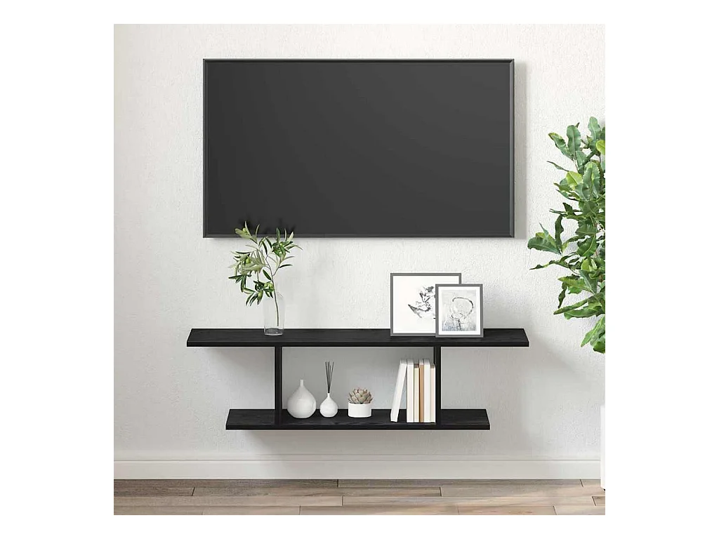 Mueble de TV | Mueble de salón colgante madera contrachapada negro 100x30x26,5 cm