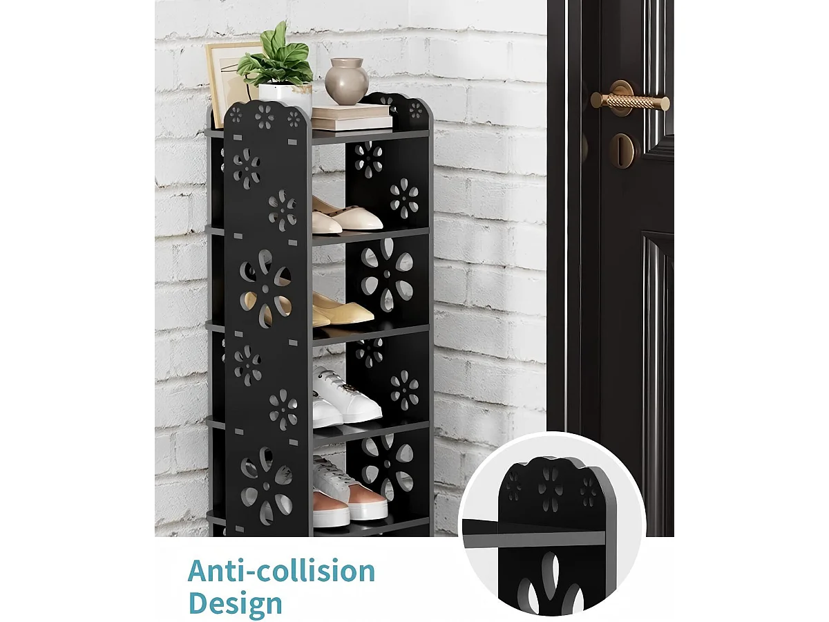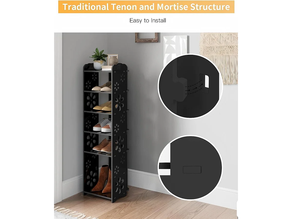 Gabinete de zapatos 5 Niveles de madera de plástico, estante de almacenamiento de zapatos, patrón de corte, decoración 26x25x66cm, negro