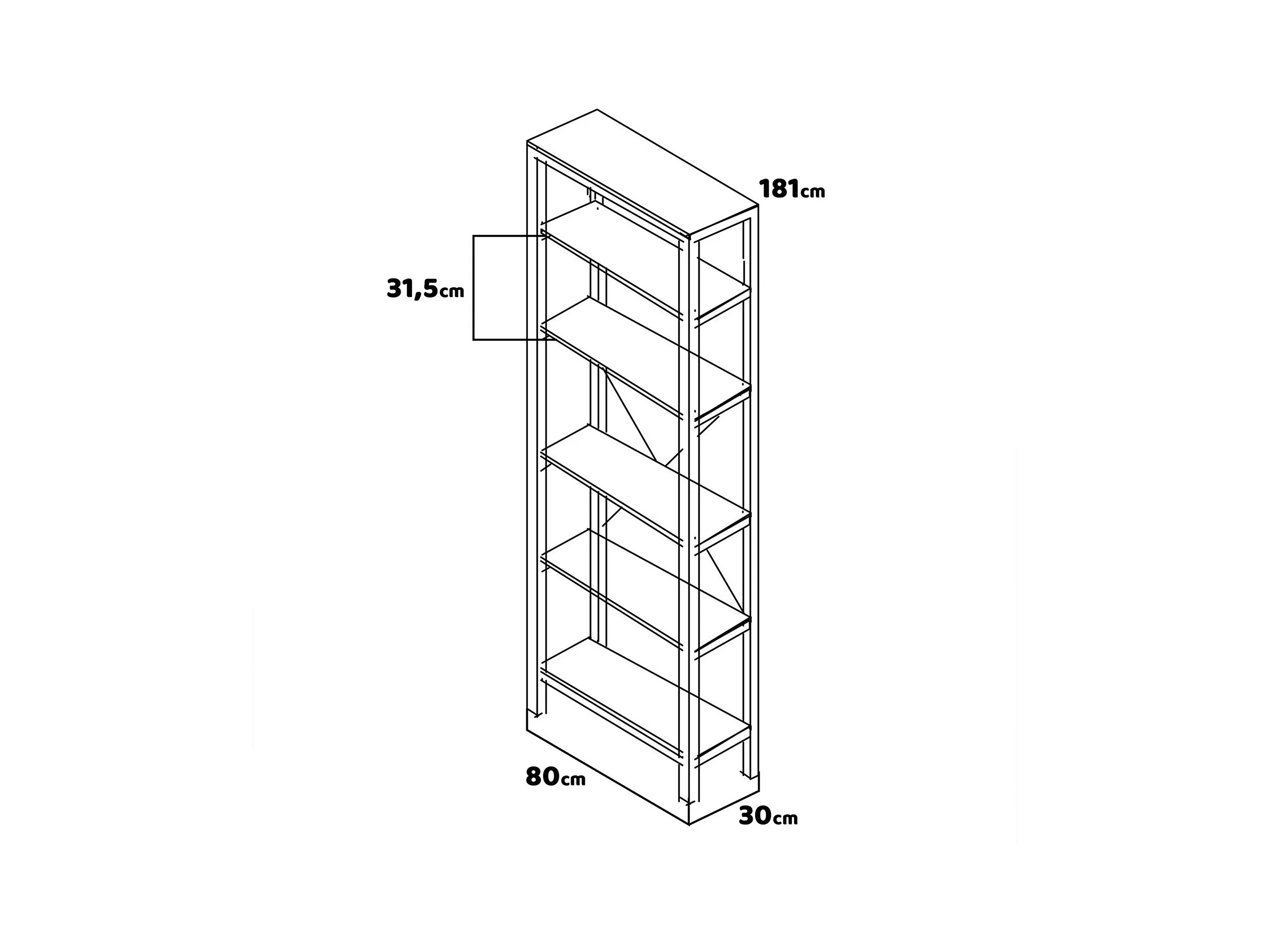 Ganbaru - Librería estantería 6 niveles 80x30xH180 cm estilo industrial oak