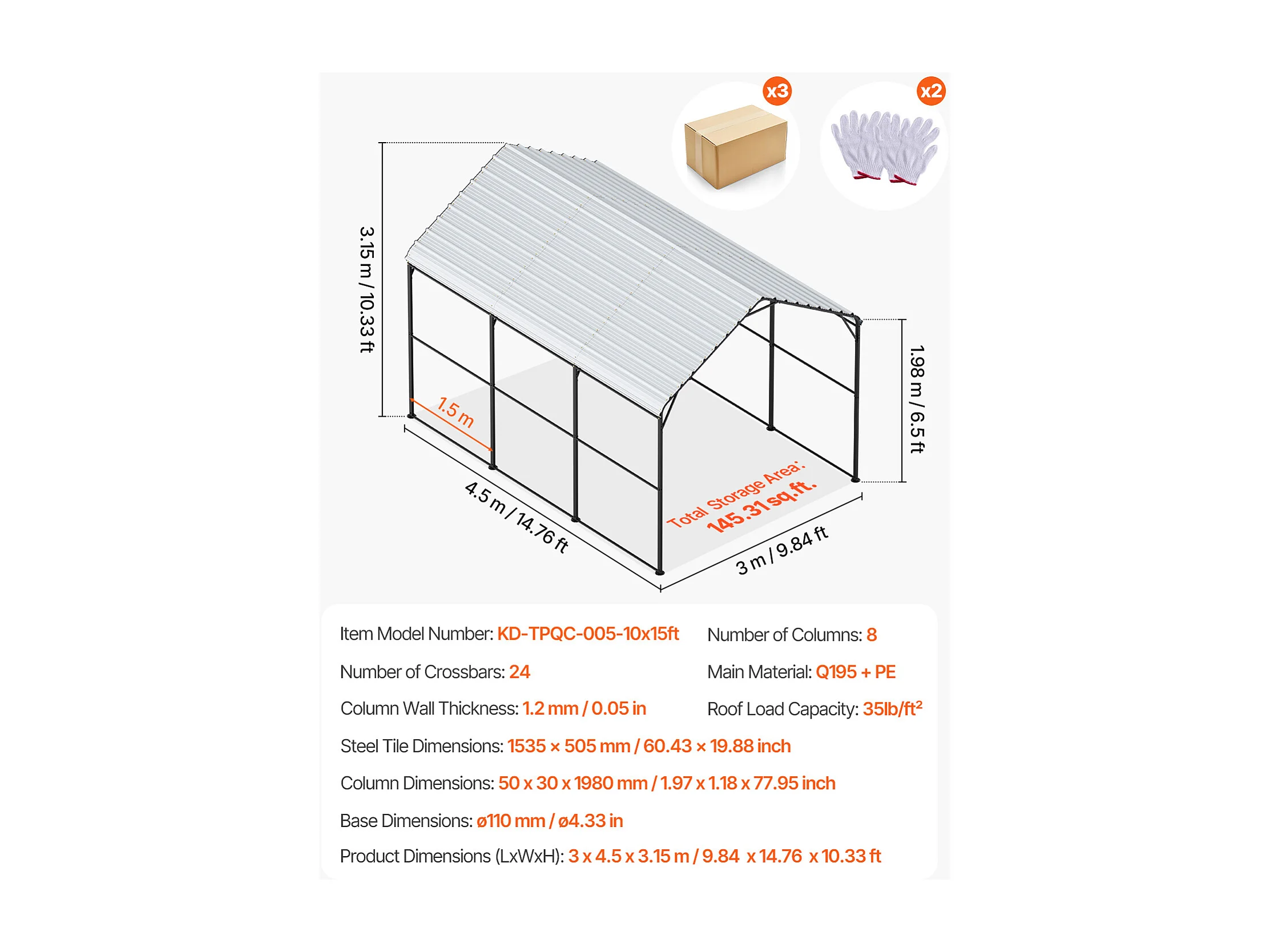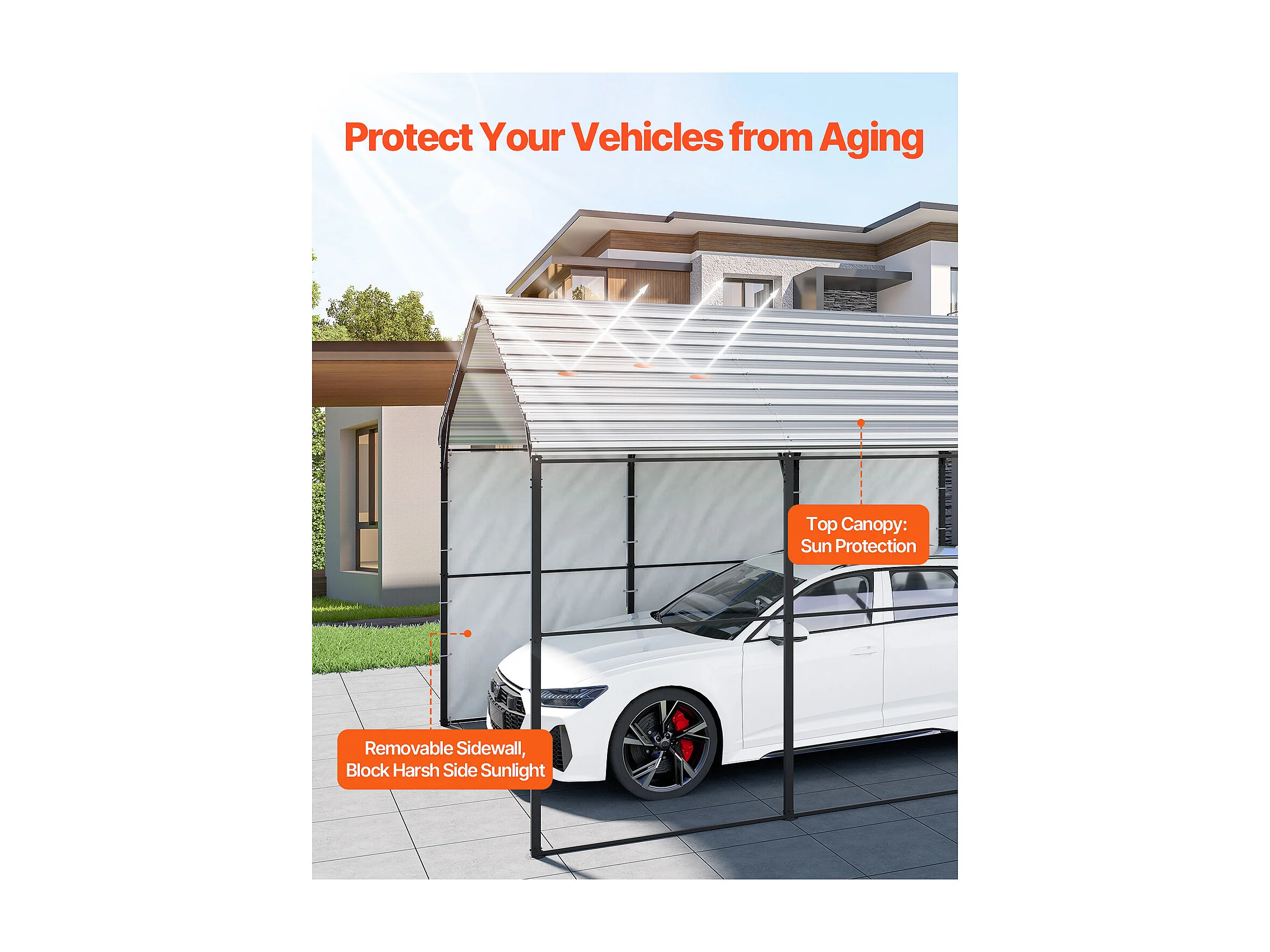 Garaje Metálico Robusto para Coches SucceBuy, 305 x 457 cm, Abriego Exterior Robusto para Coches y Barcos
