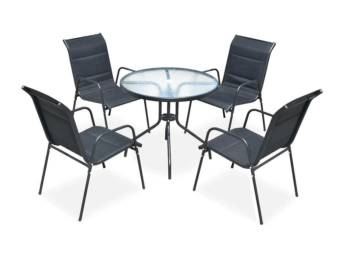 Garden Furniture - Juego de comedor de jardín 5 piezas de acero negro