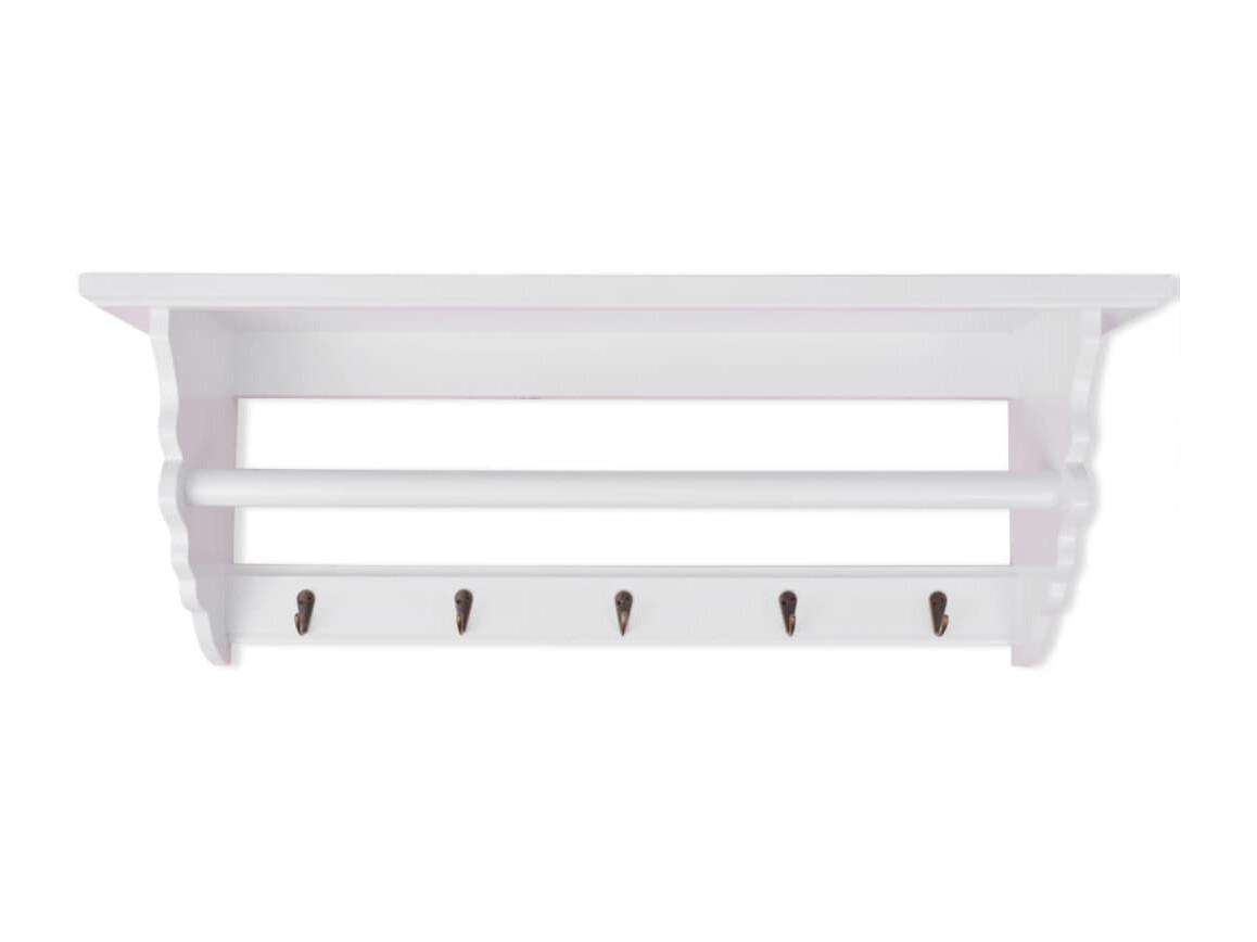 Este perchero de estilo barroco se convertirá en el centro de atención de cualquier habitación. Con un sistema de montaje invisible, el perchero se puede montar fácilmente en cualquier pared. El perchero tiene un estante que es ideal para colocar objetos como trofeos, libros, colecciones, adornos, etc. Con 5 ganchos y una barra de madera, el perchero de pared ofrece un amplio espacio para colgar sus bufandas, corbatas, abrigos, bolsos, gorras, llaves, etc. Hecho de MDF de alta calidad, el perchero de recibidor es muy duradero. Este perchero de entradita de estilo barroco encajará con cualquier decoración y ¡convertirá una pared vacía en un auténtico atractivo!