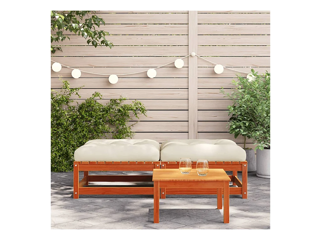 Garden Furniture - Reposapiés jardín cojines 2 uds madera maciza pino marrón cera