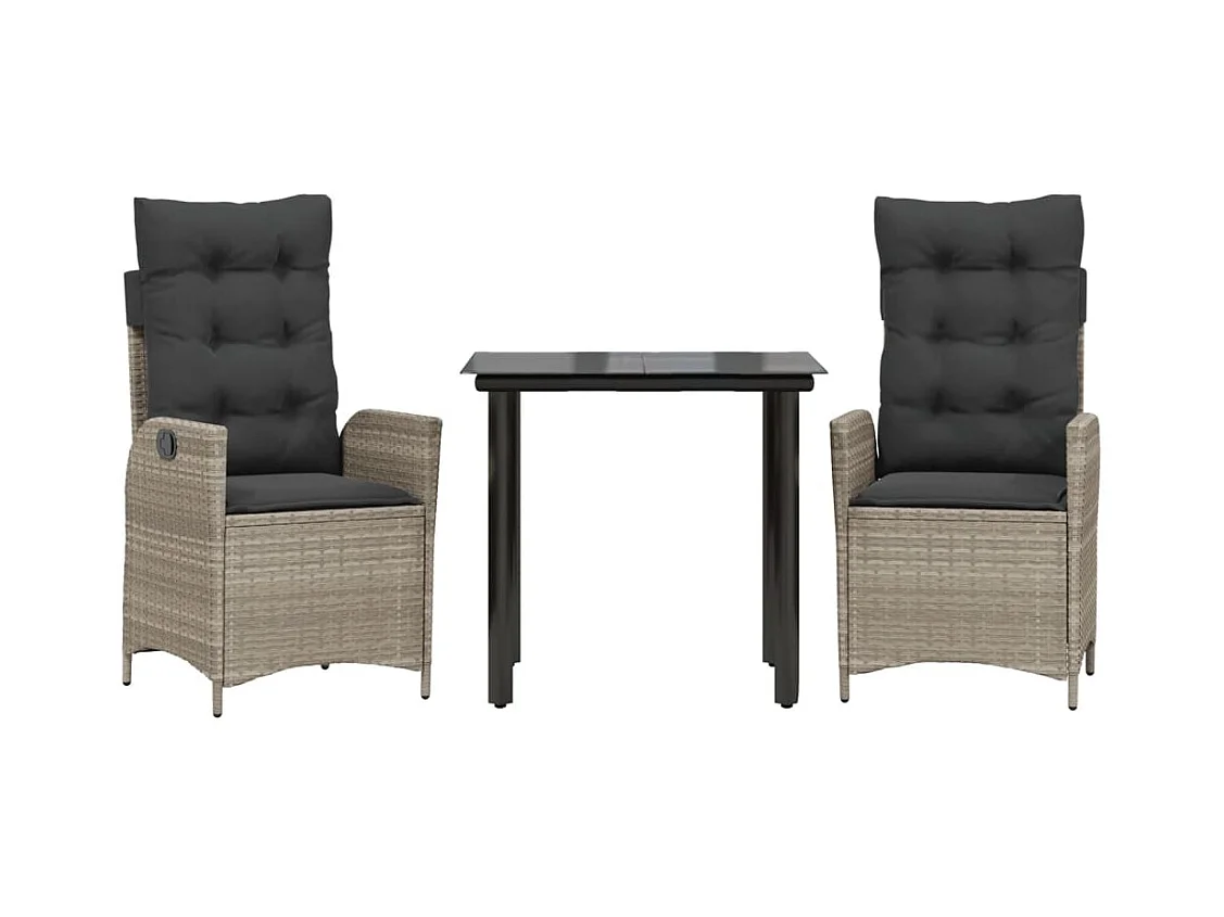 Serafino Juego de comedor de jardín 3 piezas con cojines gris