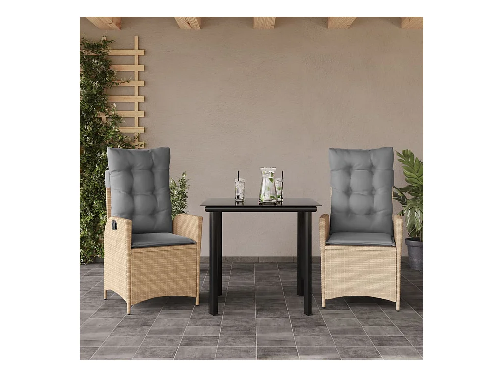 Garden Furniture - Set comedor de jardín 3 pzas con cojines ratán sintético beige