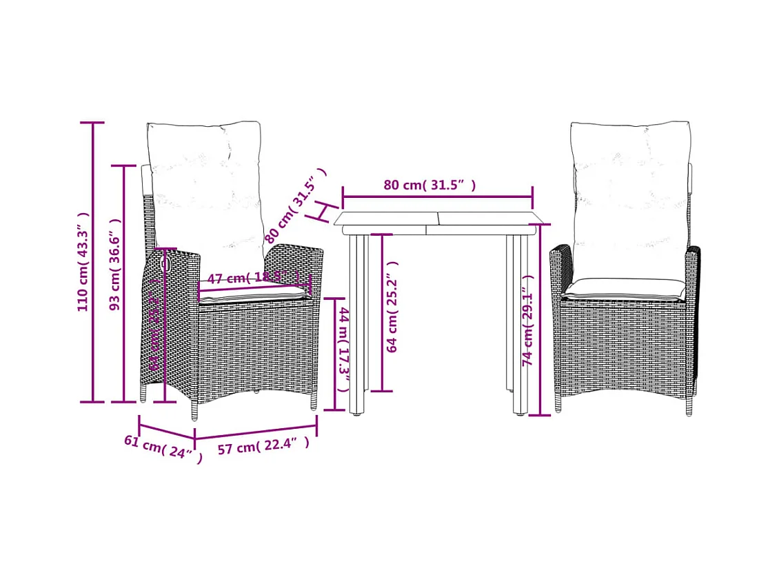 Saffet Set comedor de jardín 3 pzas con cojines ratán sintético beige