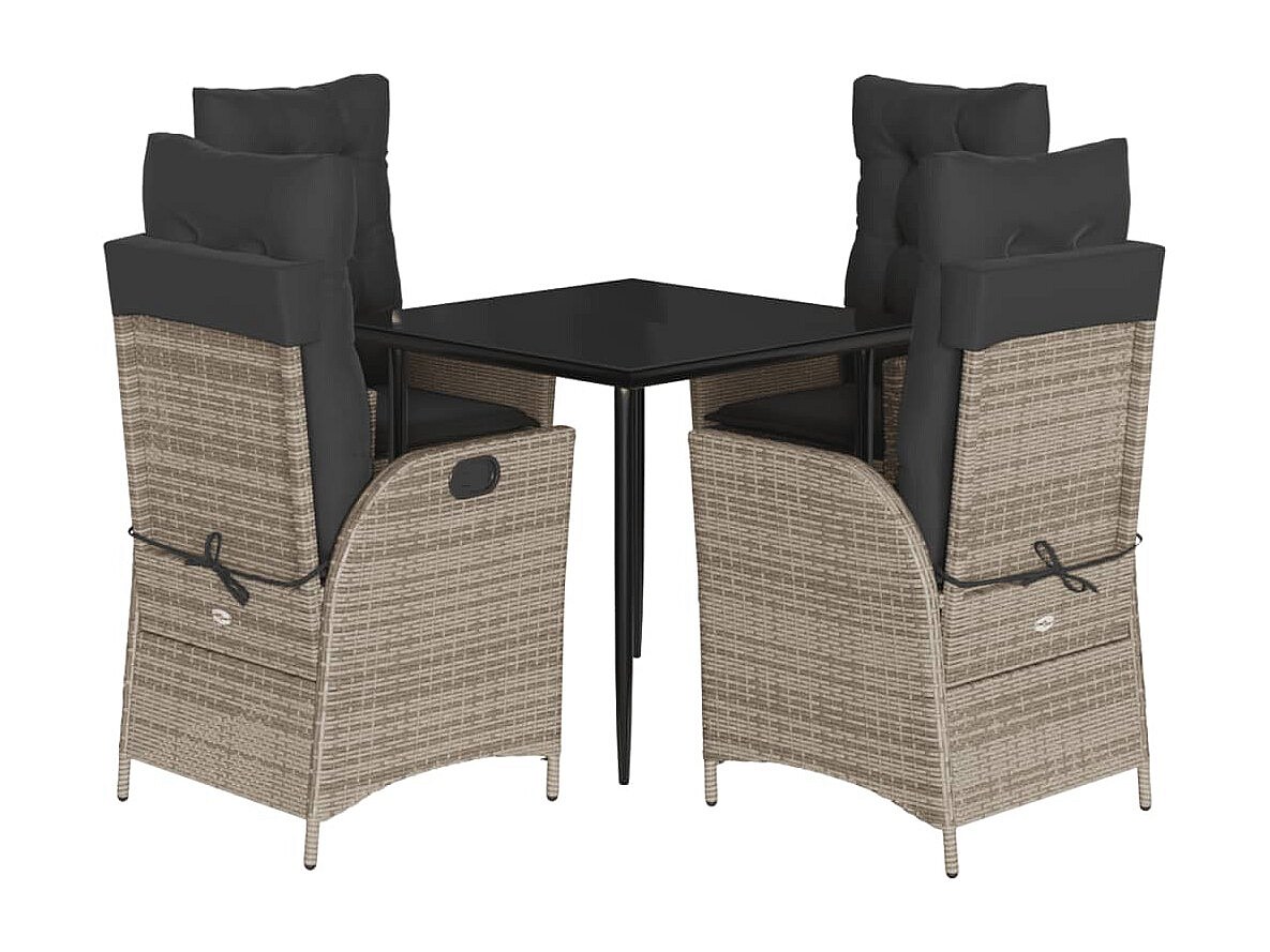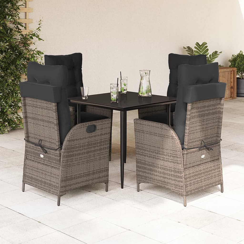 Garden Furniture - Set comedor de jardín 5 piezas con cojines ratán sintético gris
