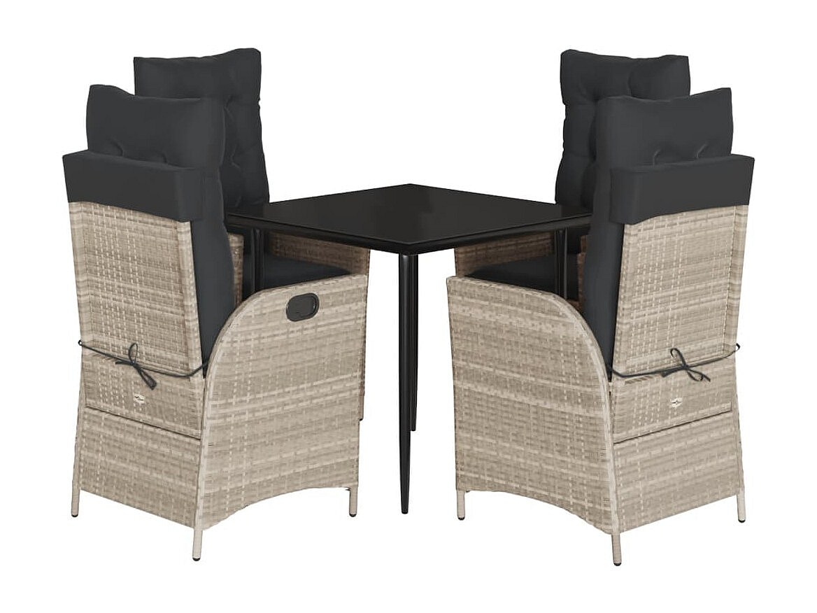 Garden Furniture - Set comedor de jardín 5 pzas cojines ratán sintético gris claro