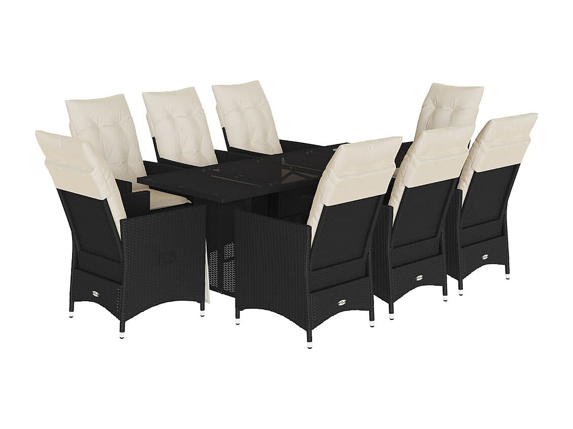 Garden Furniture - Set de comedor de jardín 9 pzas y cojines ratán sintético negro