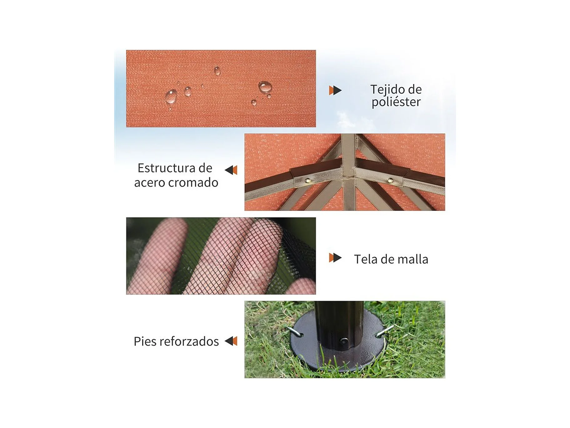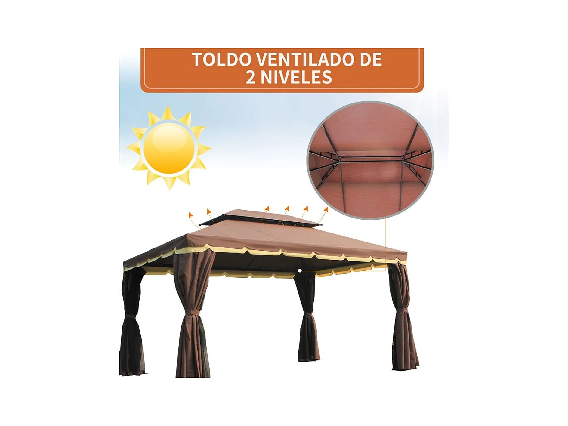 Cenador de jardín marrón 365x300x275 cm Outsunny