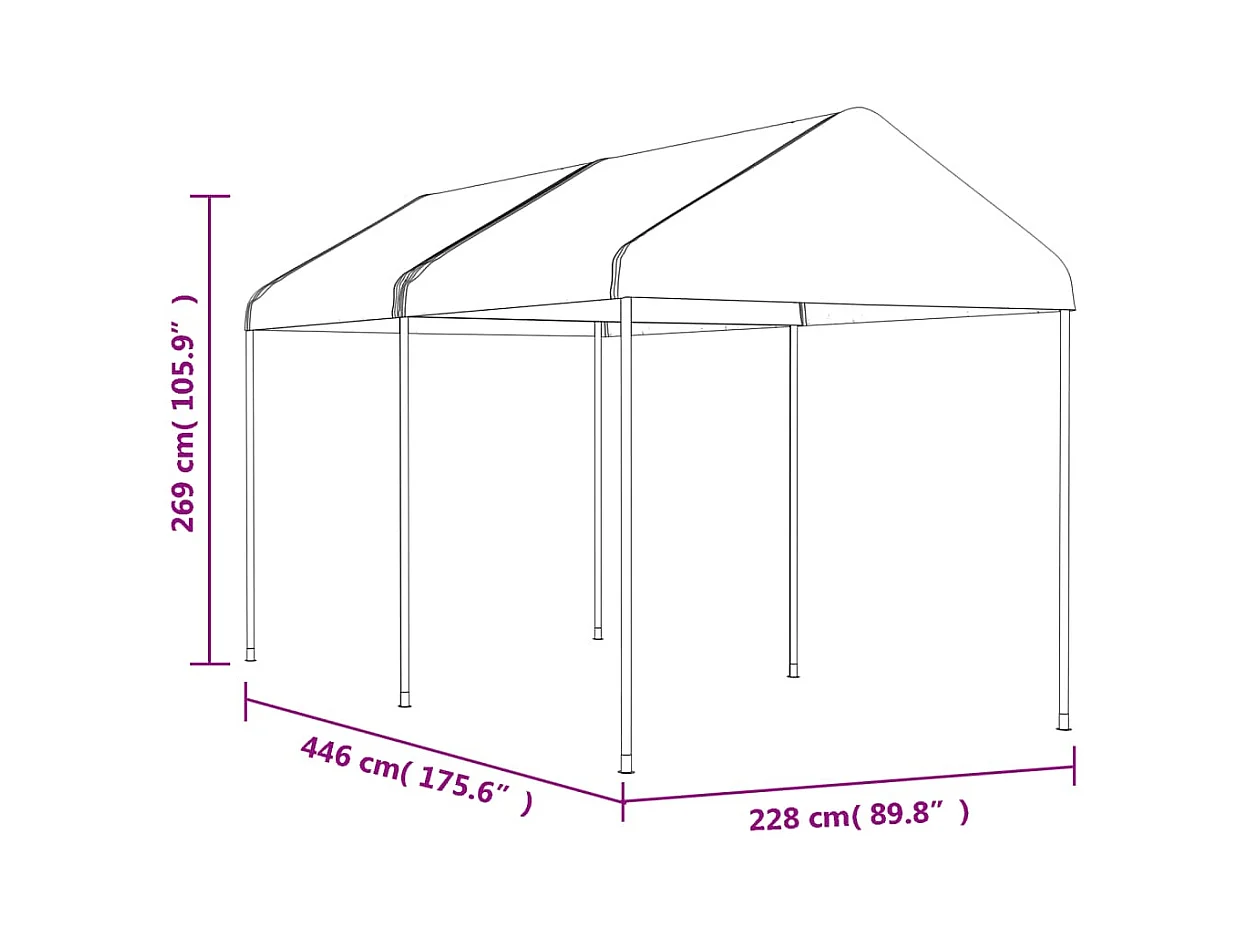 Gazebo con techo blanco 4,46x2,28x2,69 m polietileno