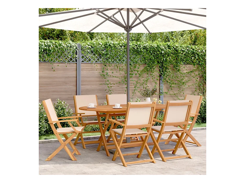 Set de comedor de jardín 7 piezas tela madera maciza beige