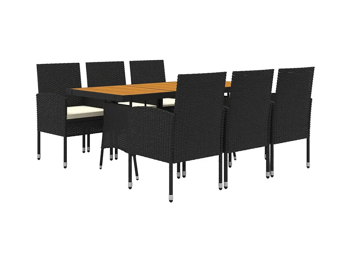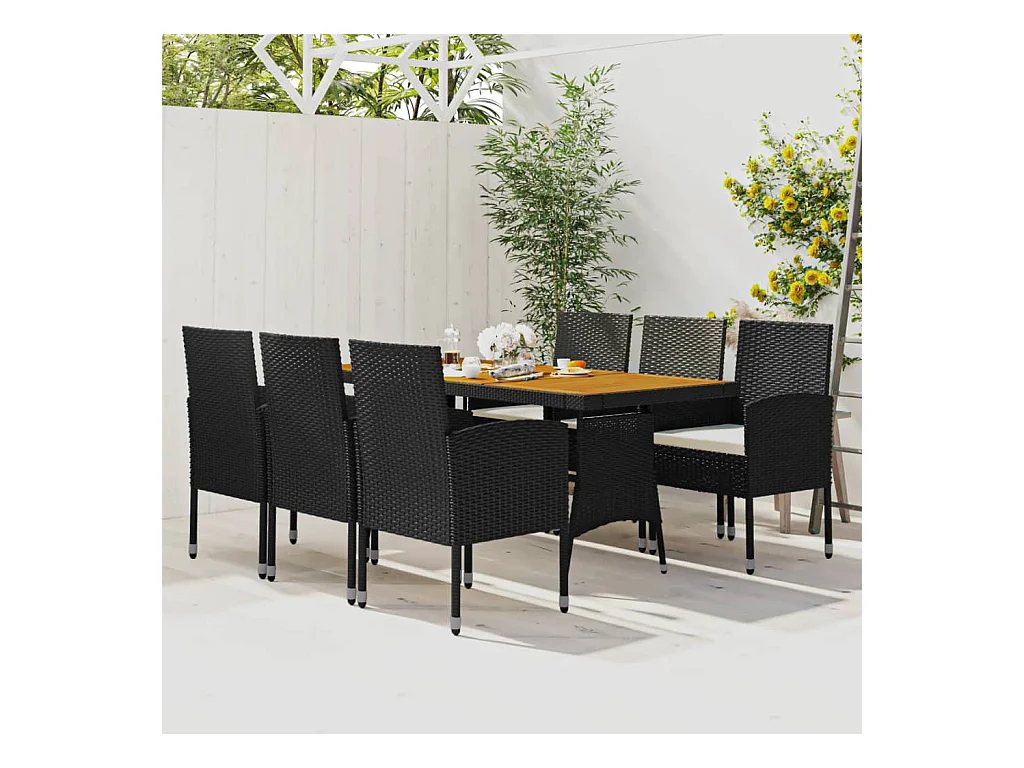 Irmelin Set comedor jardín 7 pzas ratán sintético y madera acacia negro