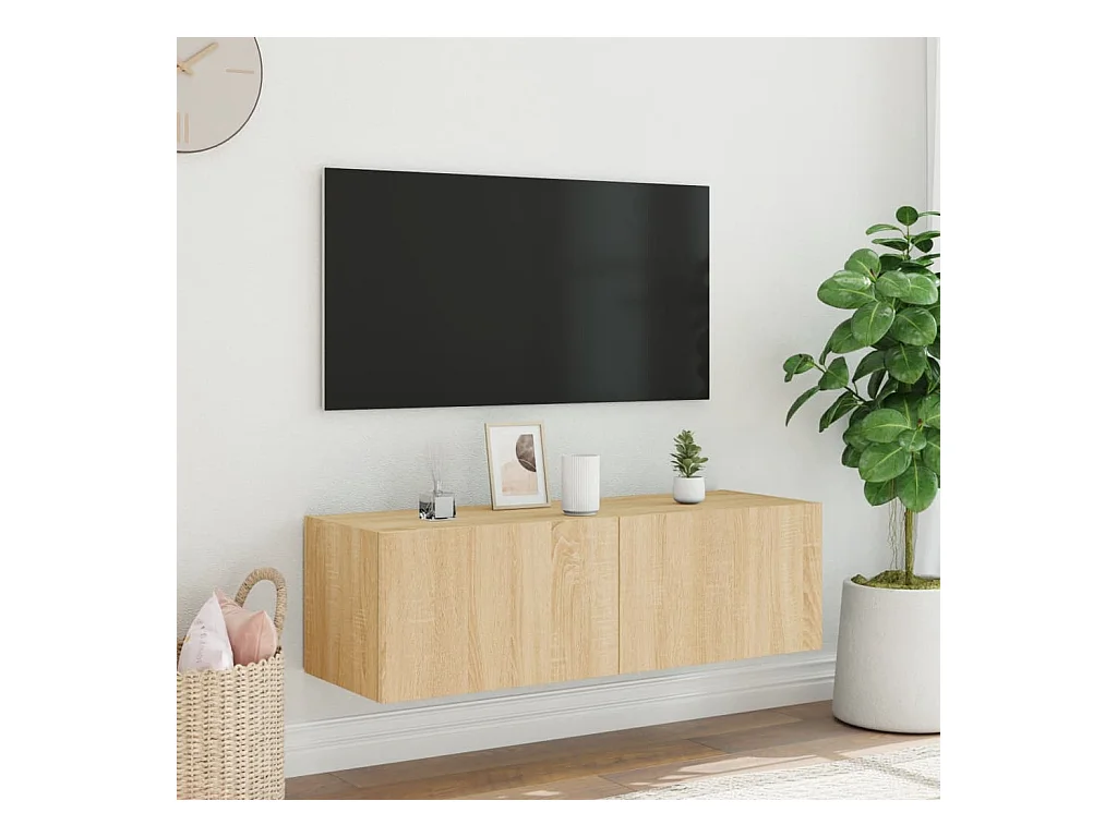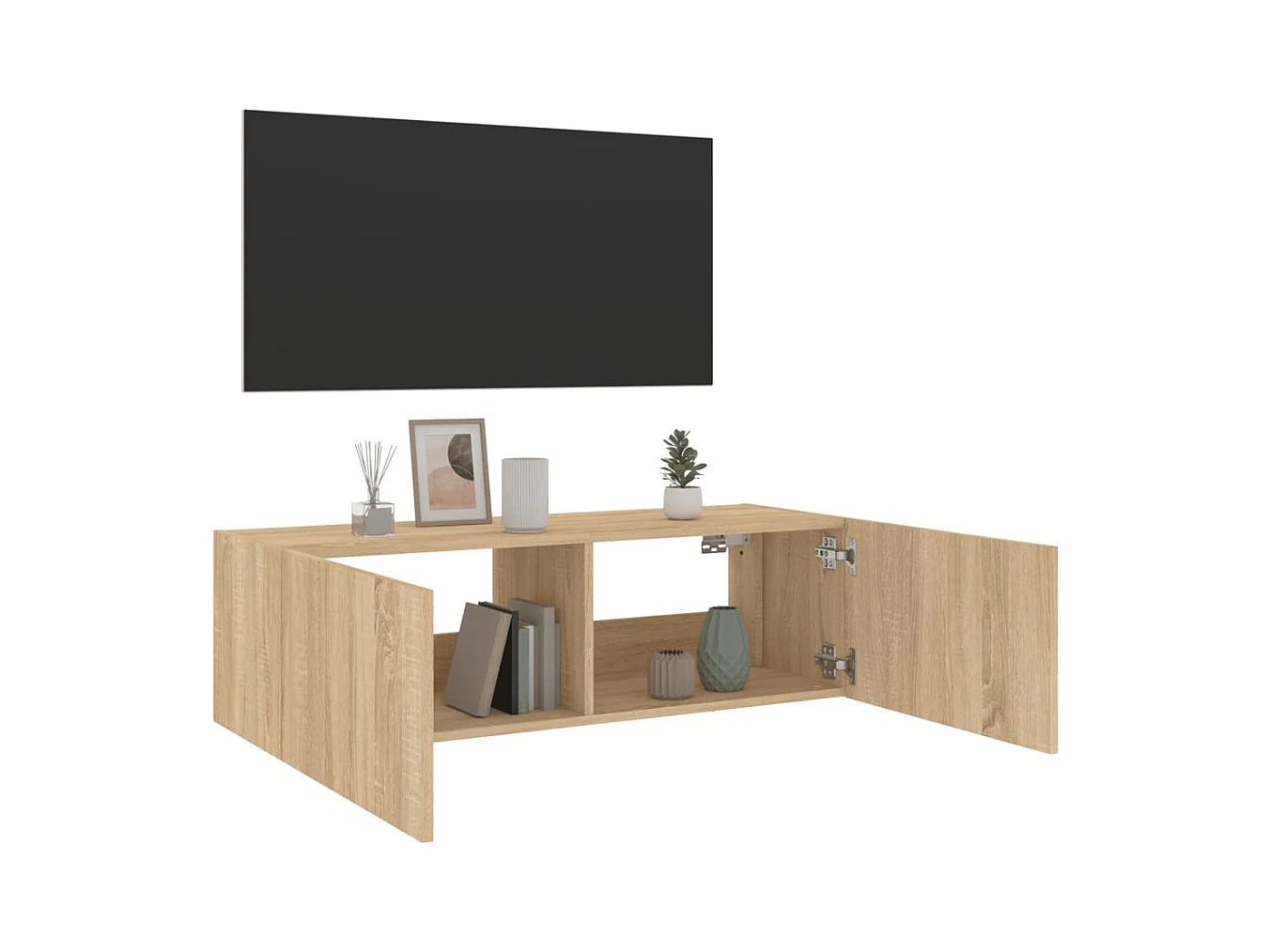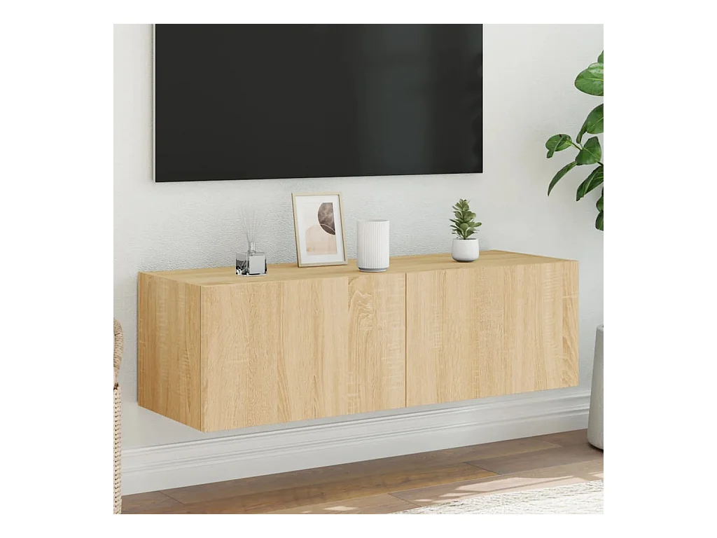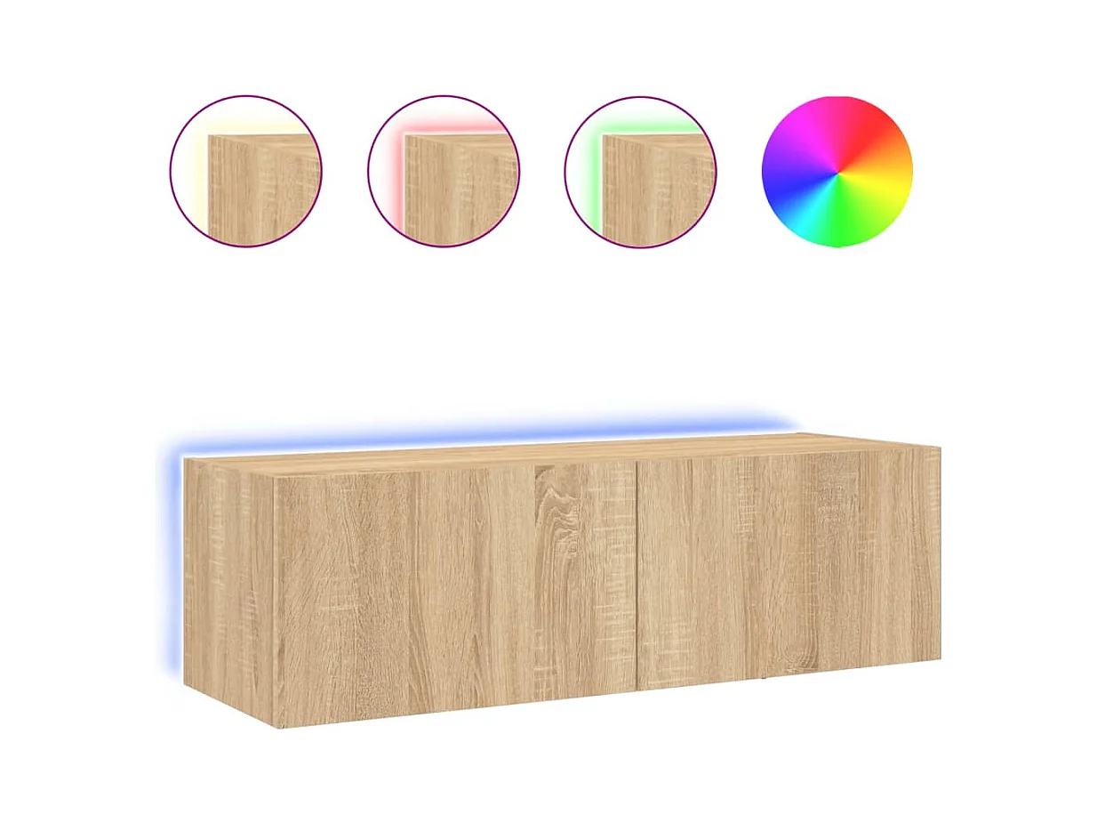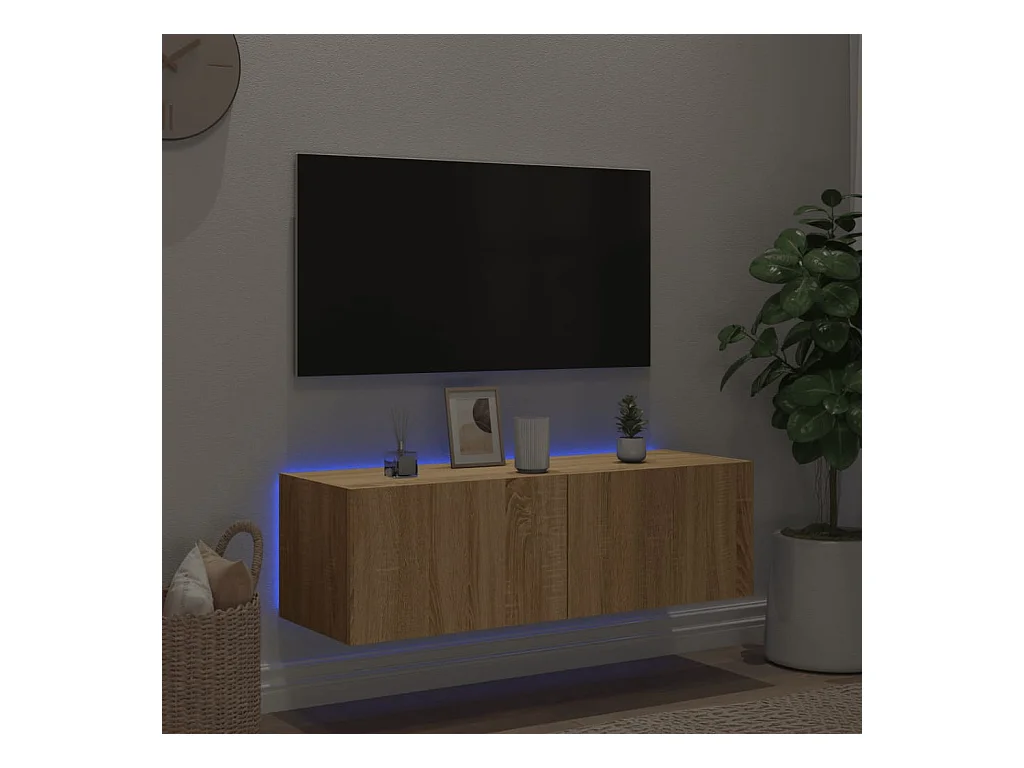 Gerben Mueble de TV de pared con luces LED roble Sonoma 100x35x31 cm