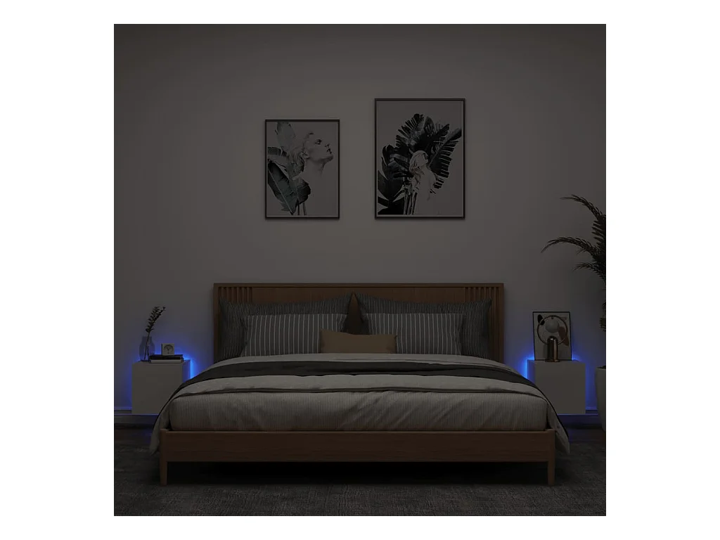 Gerben Muebles de TV de pared con luces LED 2 uds blanco 30,5x35x30 cm