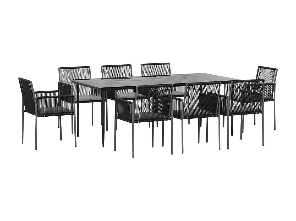 Eliseo Juego de comedor de jardín 9 piezas con cojines negro