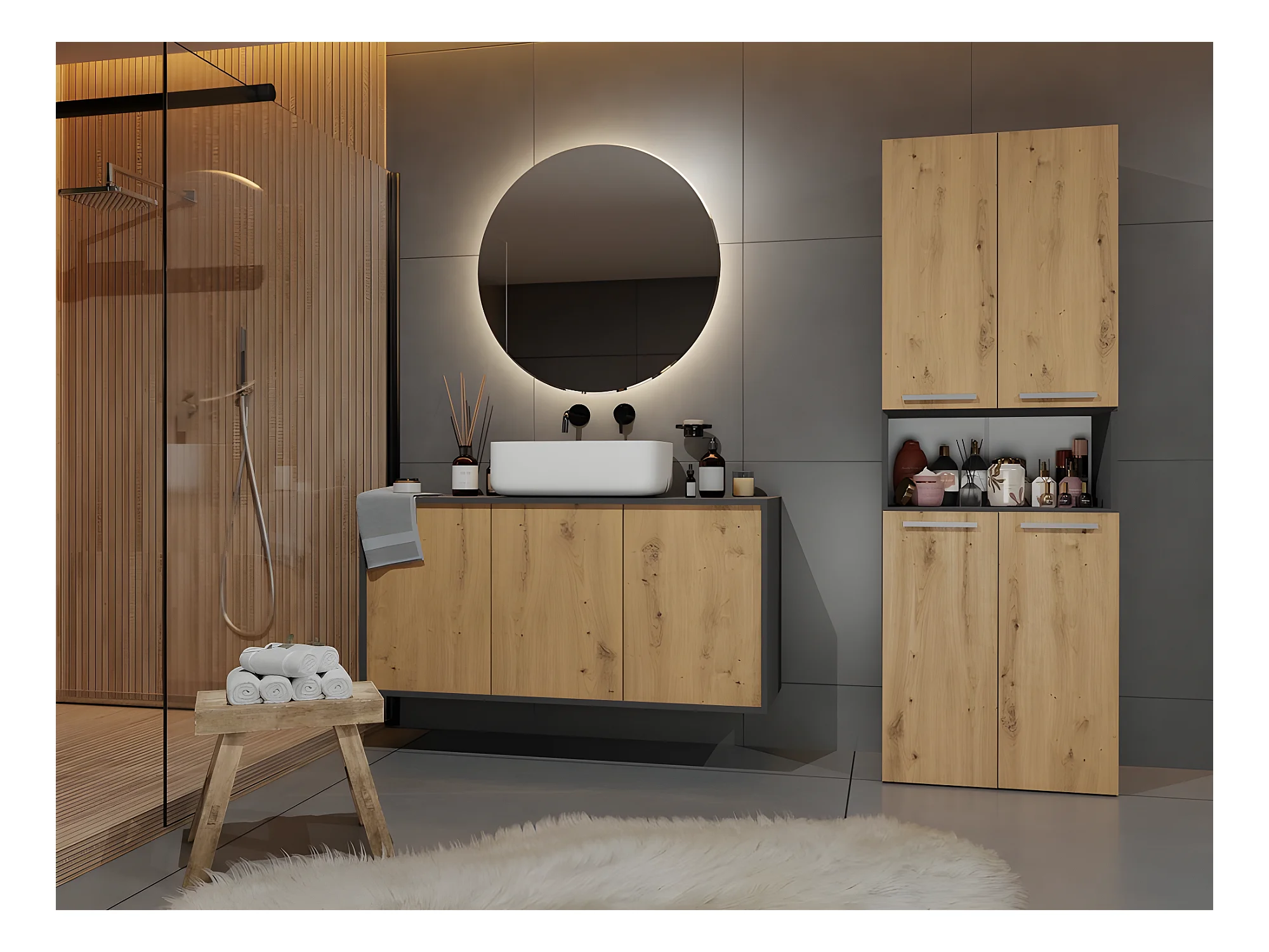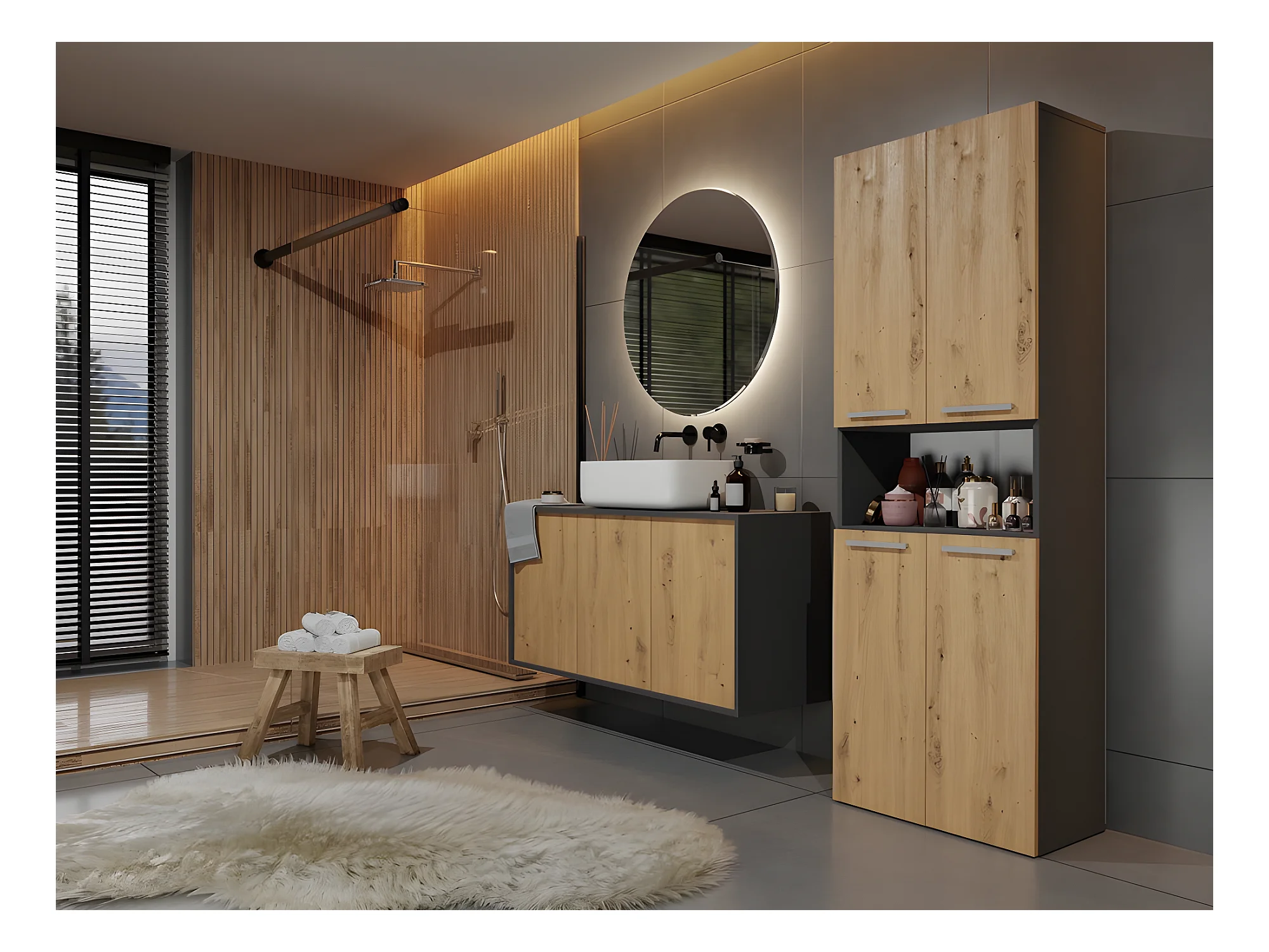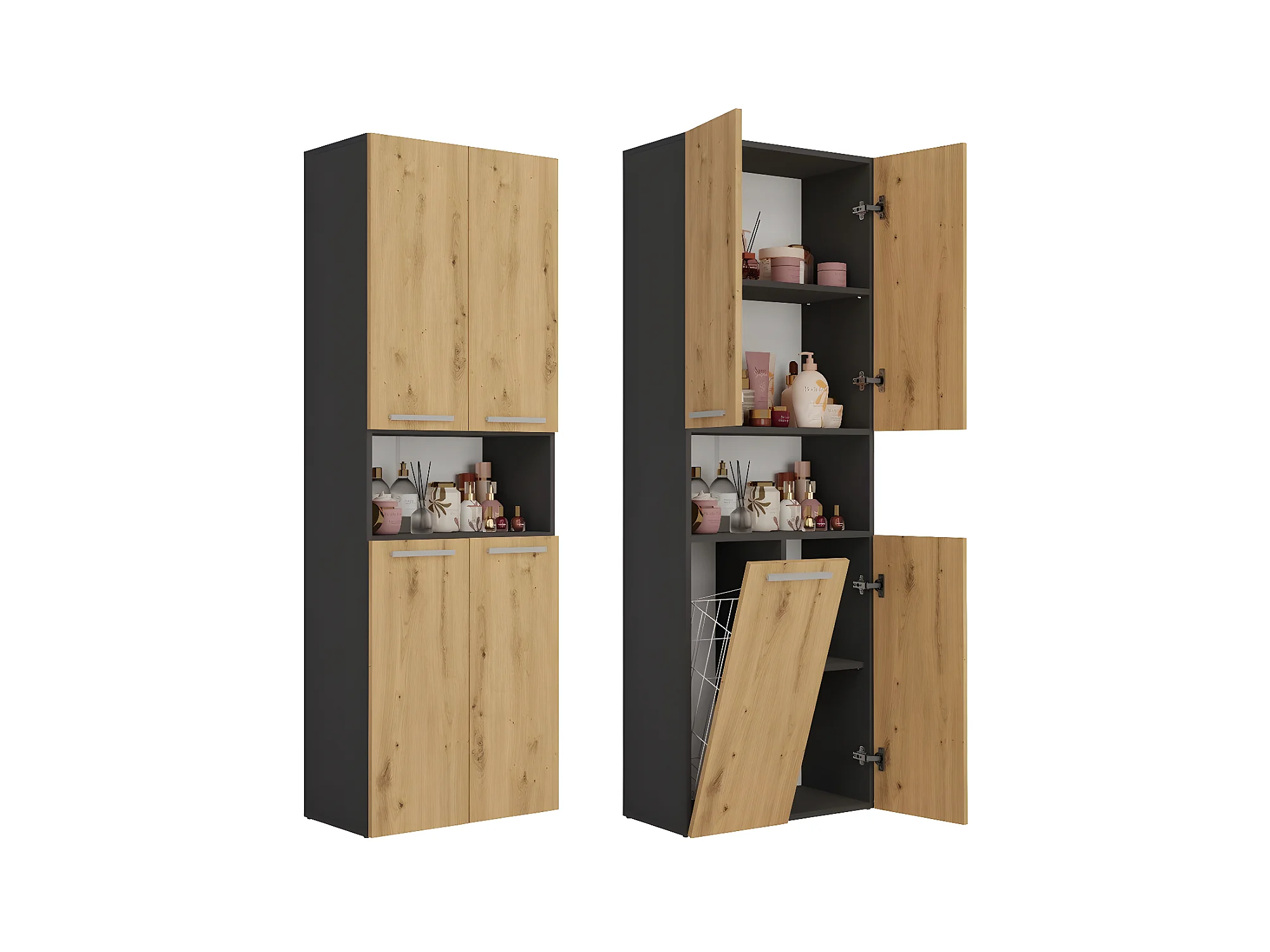 GLAZE - Mueble de cuarto de baño con cesta - Estilo moderno - 174x60x30 cm - Columna de cuarto de baño