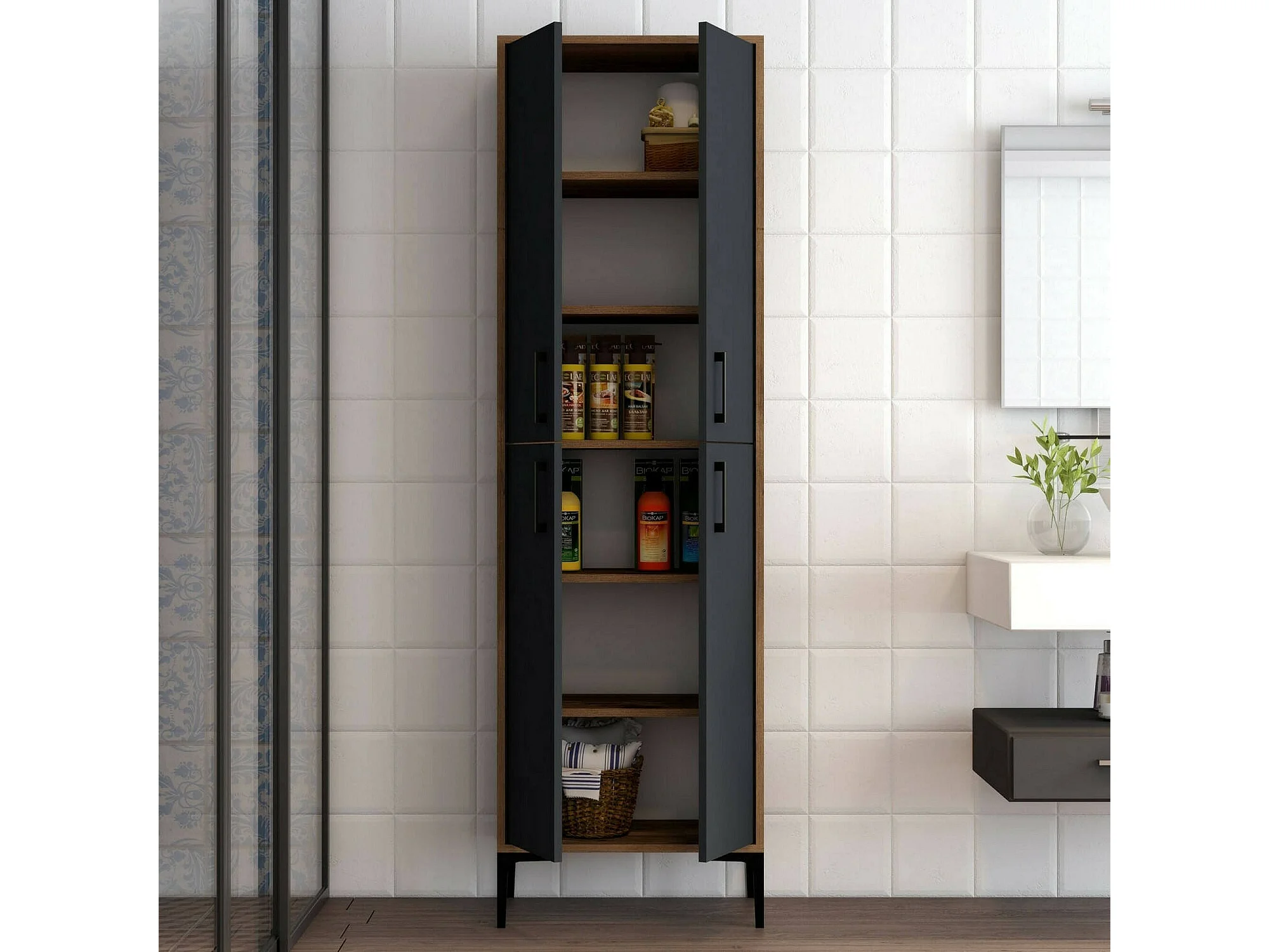 Gran armario multiusos Denipot, Muebles multifuncionales, Zapatero, Armario para zapatos, 60x35h200 cm, Nogal y Antracita