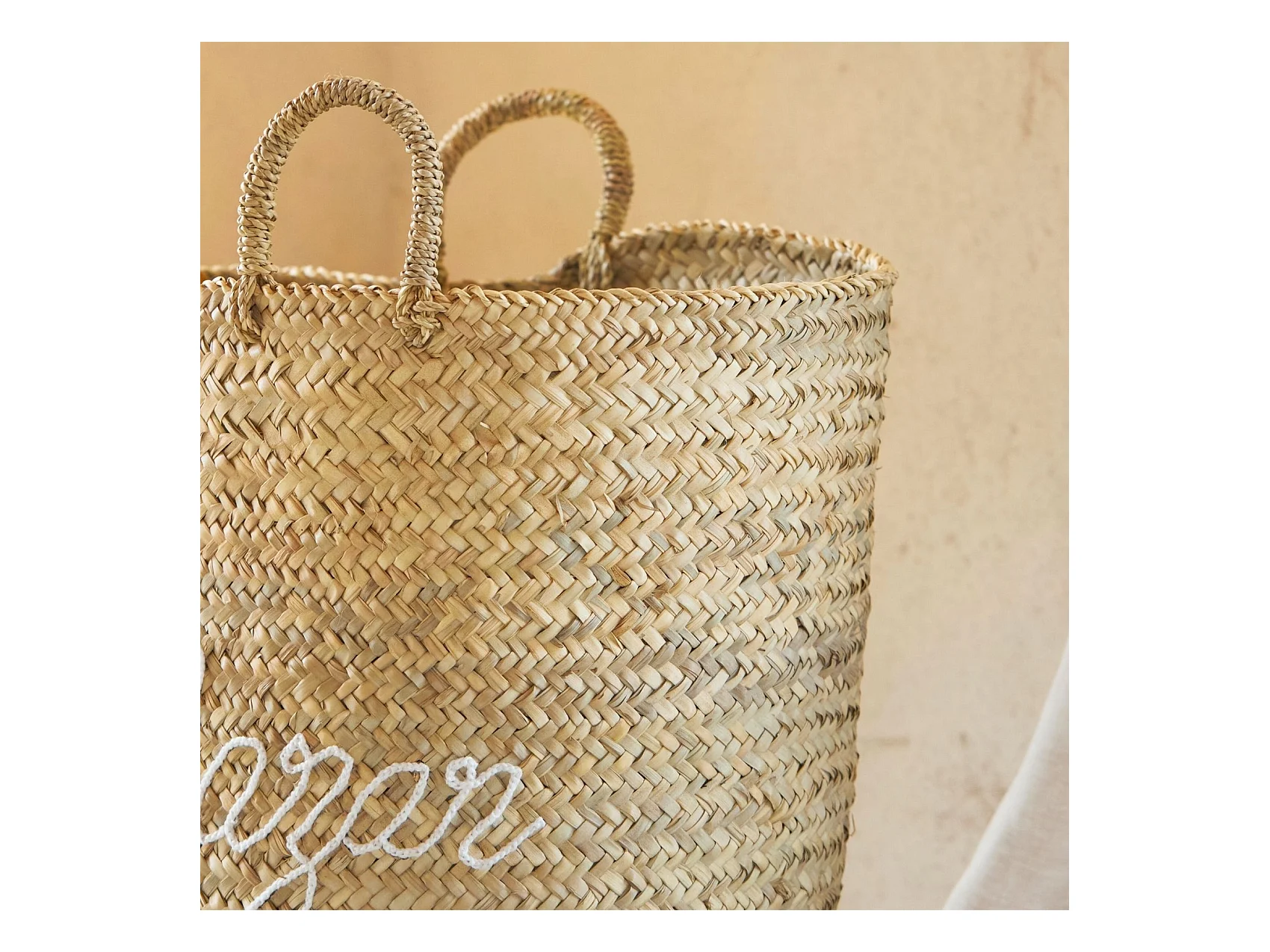 Set de 3 cestas Brais de fibra natural con asas, blanco/natural