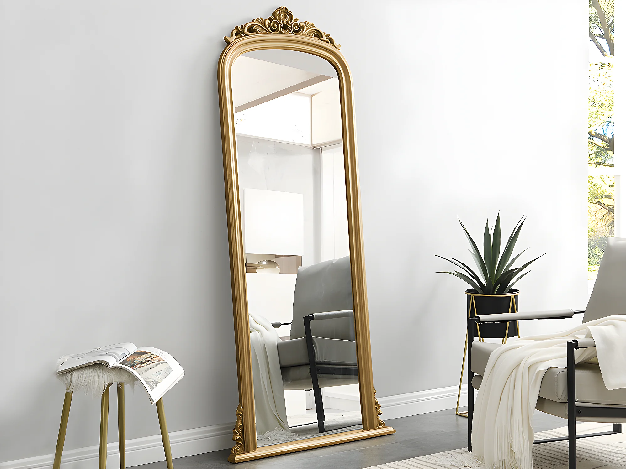 Gran espejo MERRY - madera de paulownia - Alt. 180 cm - Dorado