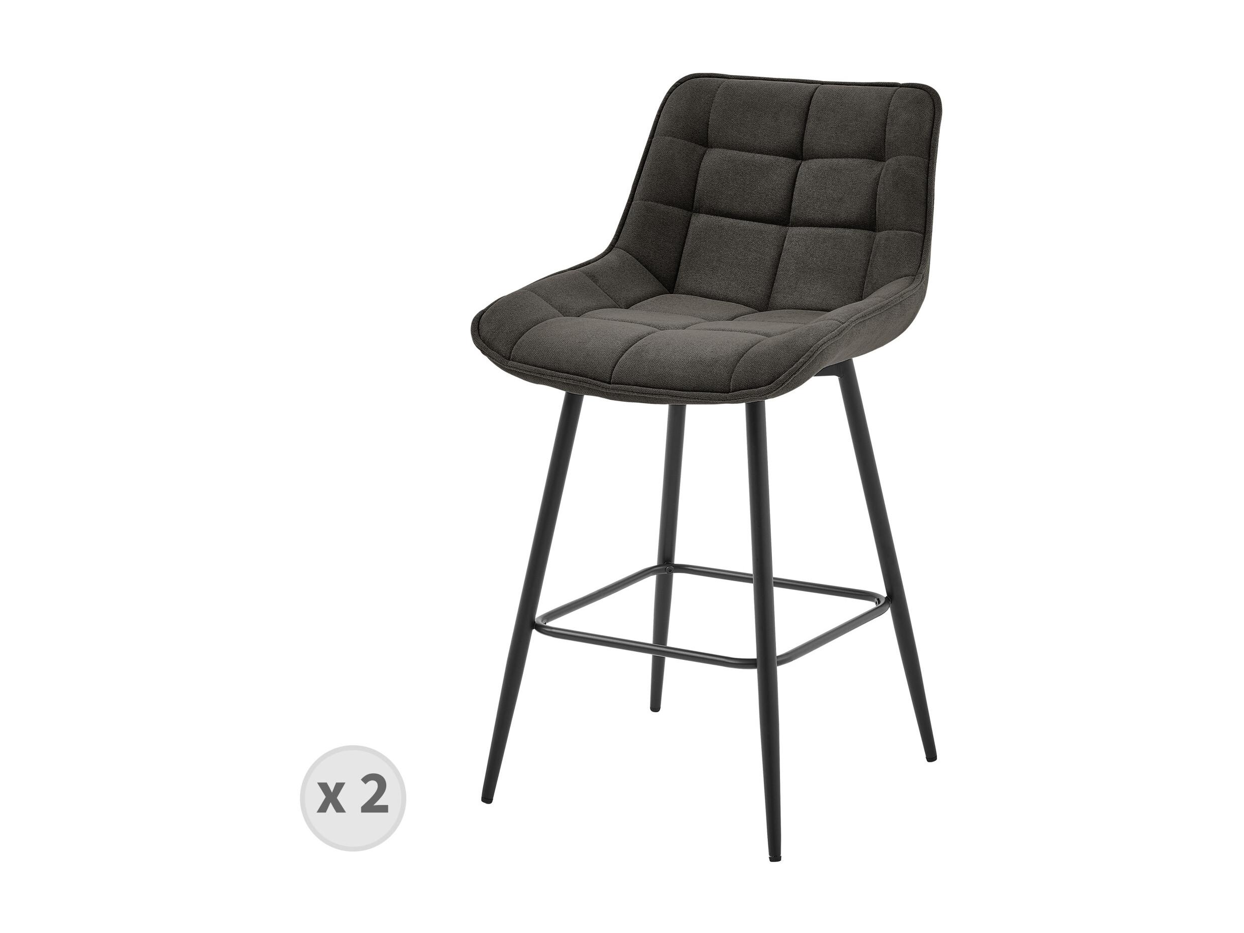 GRANT-Silla de bar de tela gris y metal negro (x2)