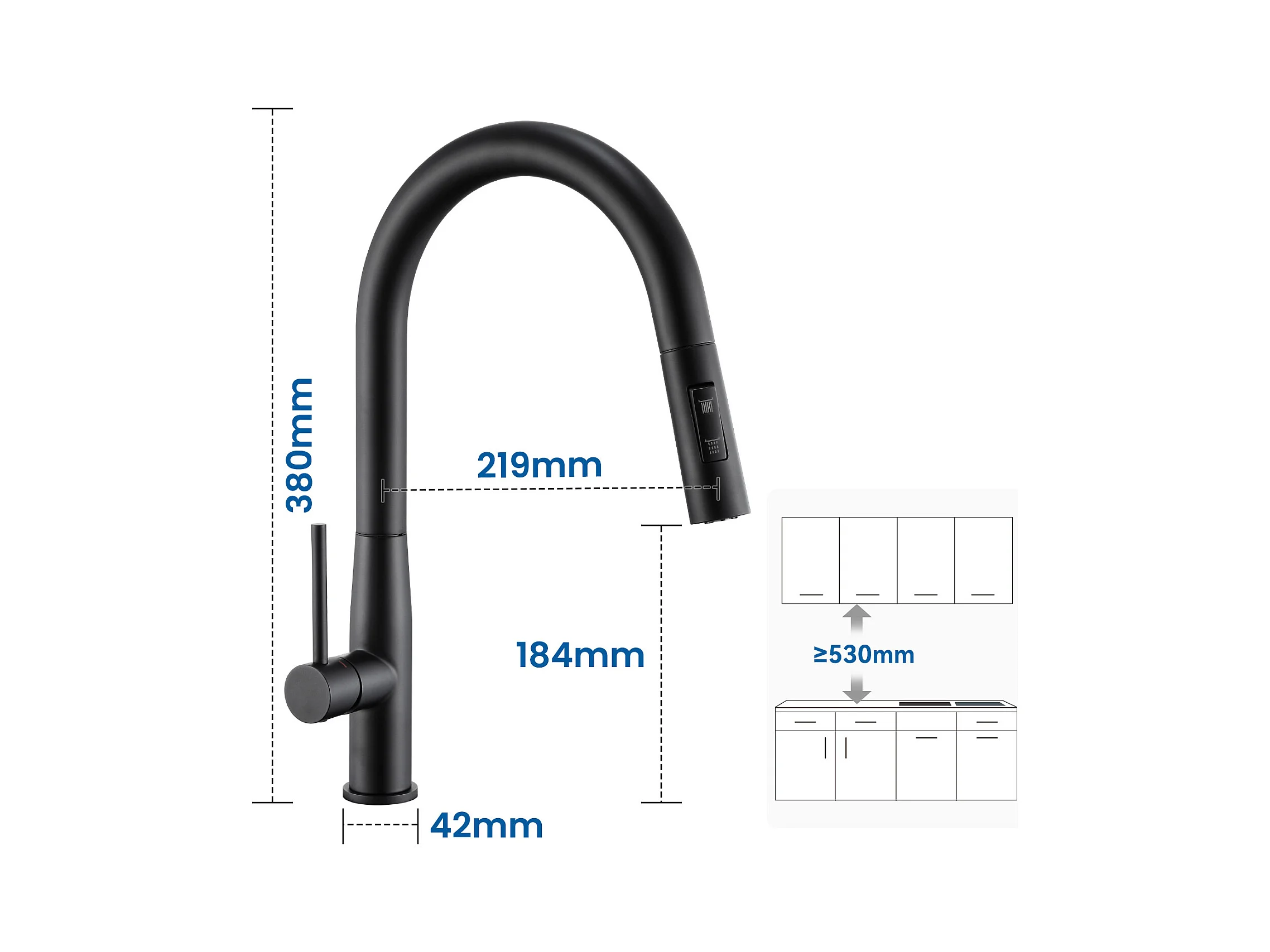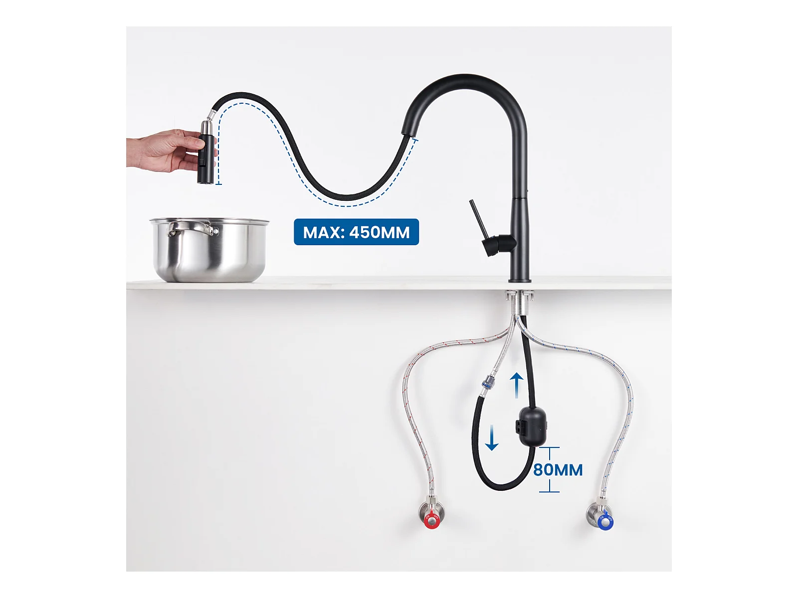 AuraLumMax Mezclador de CCocina con Ducha Extraíble,2 Modos Jet, Grifo Cocina Rotativo 360°,Agua Caliente/Fría,Cartucho de Cerámica, Negro,Modelo UE