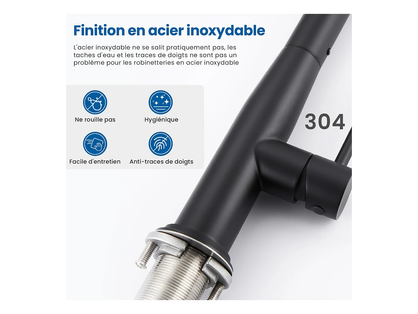 Grifo Cocina Negro,Mestidor Cocina Flexible,2 ModoS de Pulverización, Rotativo 360°, Grifo Fregadero Cocina Con Perlator Ahorrador De Agua