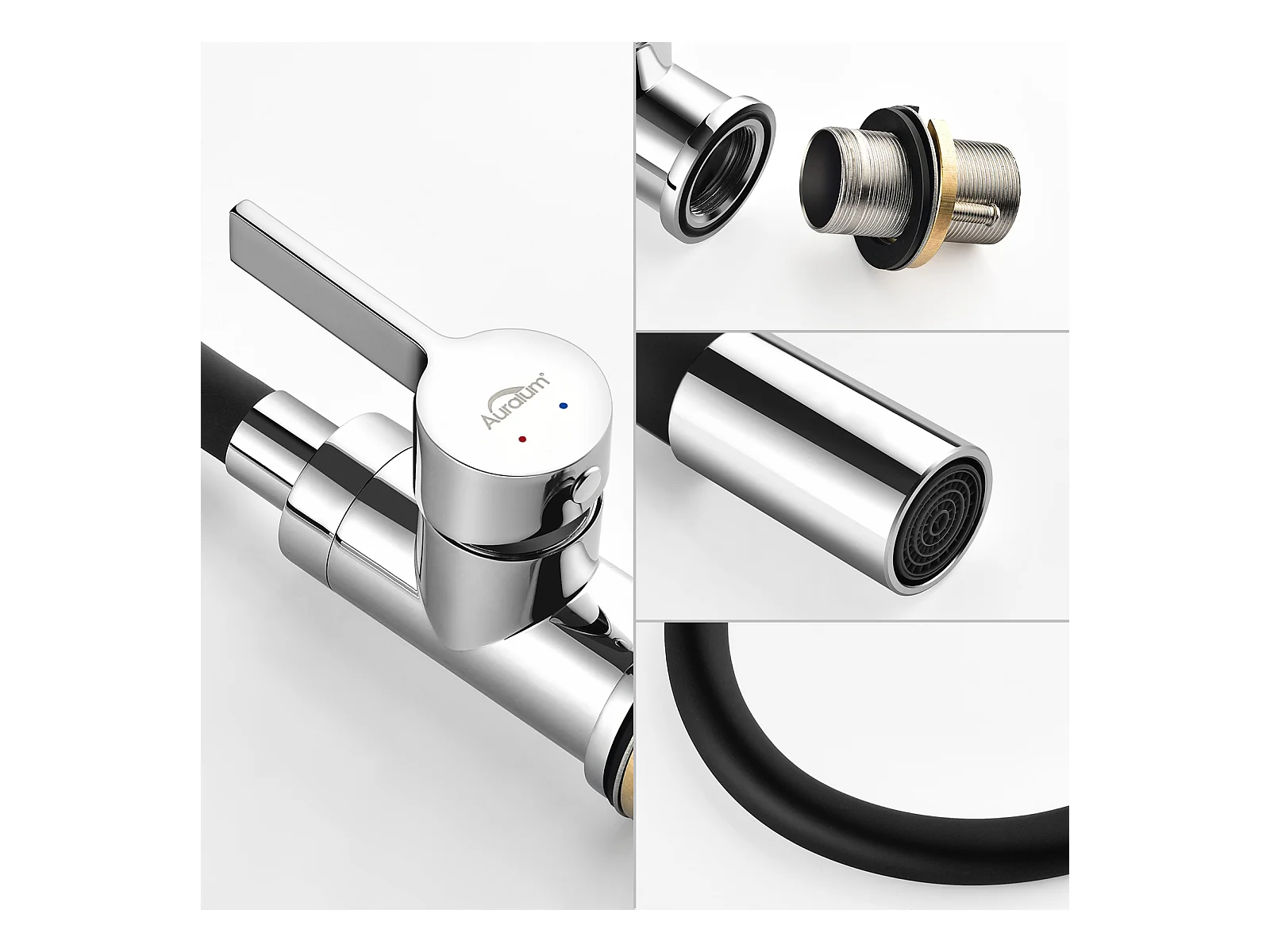 AuraLumMax Mezclador de CCocina con Ducha Extraíble,2 Modos Jet, Grifo Cocina Rotativo 360°,Agua Caliente/Fría,Cartucho de Cerámica, Negro,Modelo UE