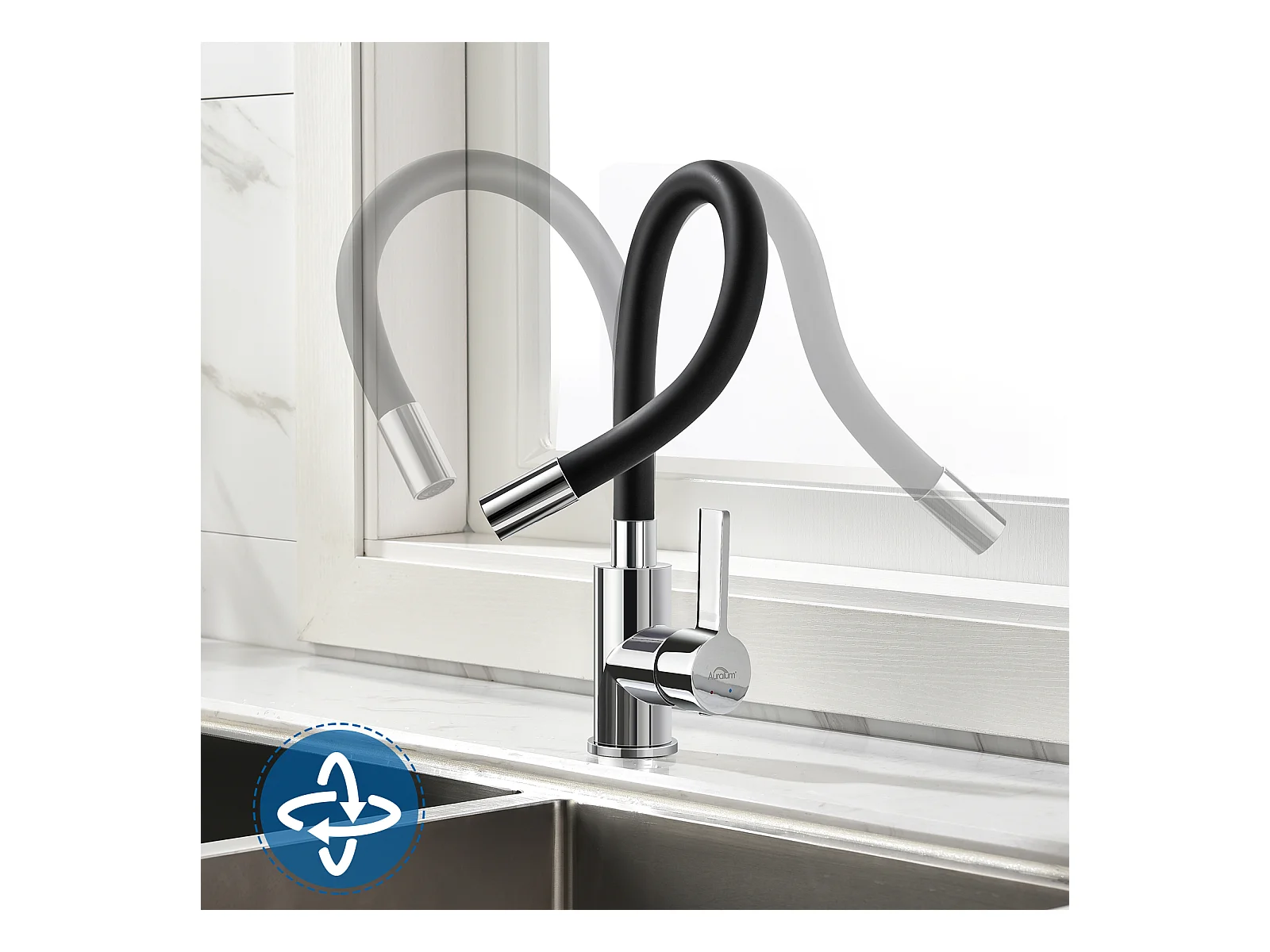 Grifo Cocina Flexible Cefo Alto Orientable Libremente Mezclador Fregadero Flexible Latón Cromado yNegro Grifo Fregadero De Un Solo Agujero