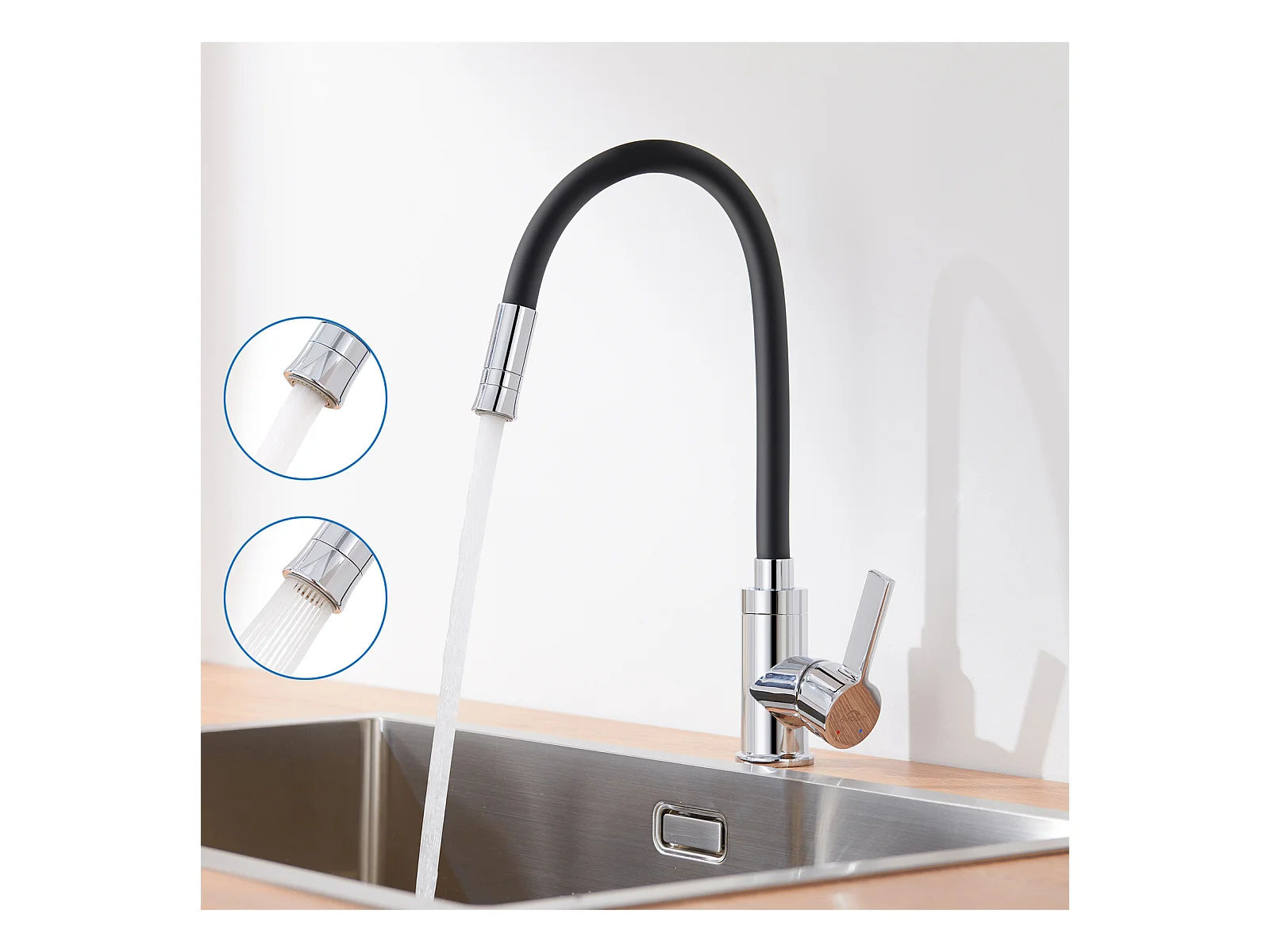 Grifo Cocina Flexible Cefo Alto Orientable Libremente Mezclador Fregadero Flexible Latón Cromado yNegro Grifo Fregadero De Un Solo Agujero