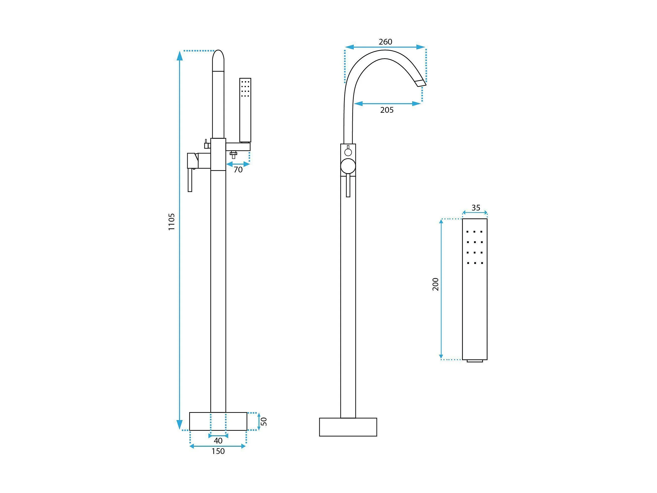 Grifo De Bañera De Suelo Rea Lungo Brush Gold