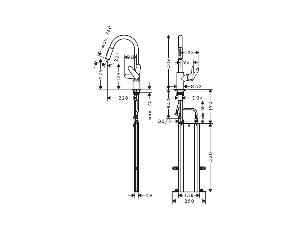 Grifo de cocina con ducha HANSGROHE Metris Select M71 320 cromo