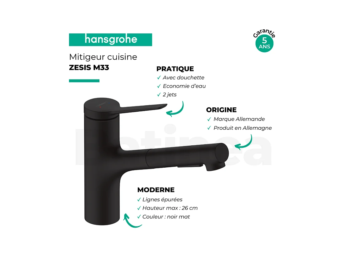 Grifo de cocina con HANSGROHE Zesis M33 150 2 chorros negro mate