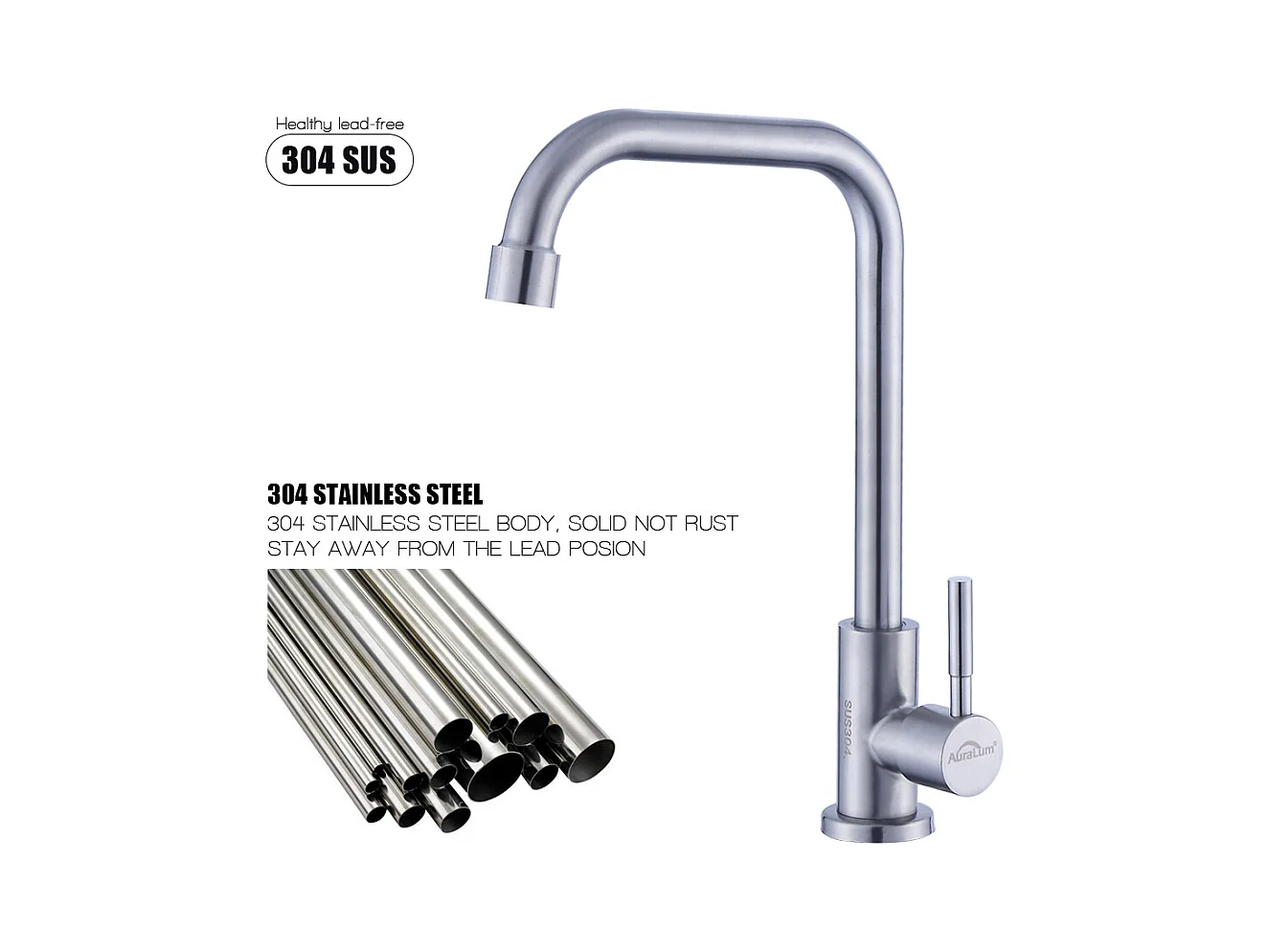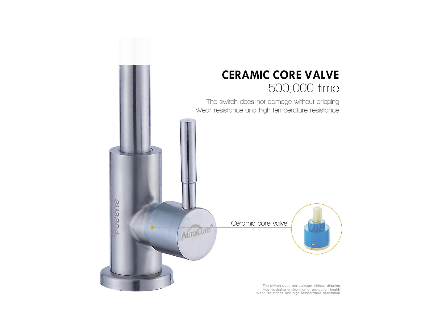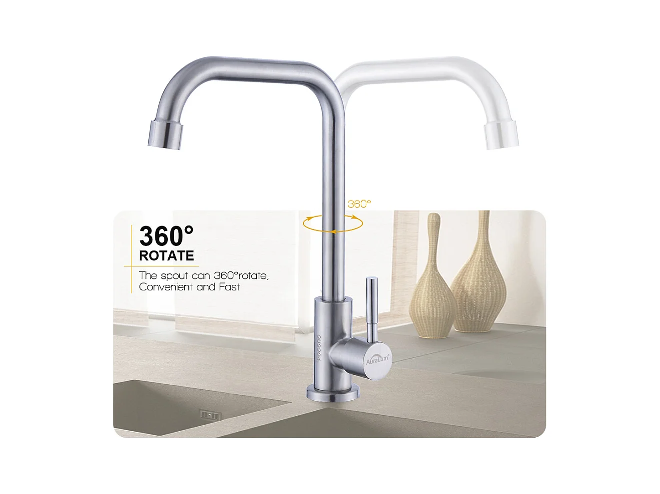 2pcs Auralum max Grifo de Cocina de Agua Fría, Pivotante de 360°, Grifo de Fregadero de Agua Fría de Palanca Única, Acero Inoxidable- Cepillado