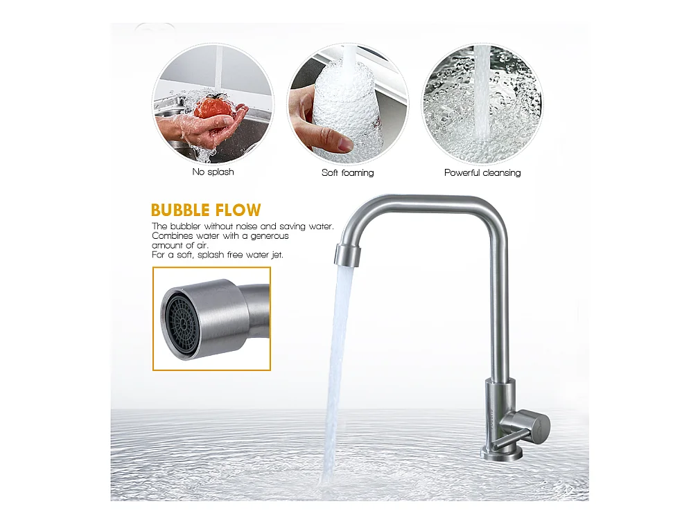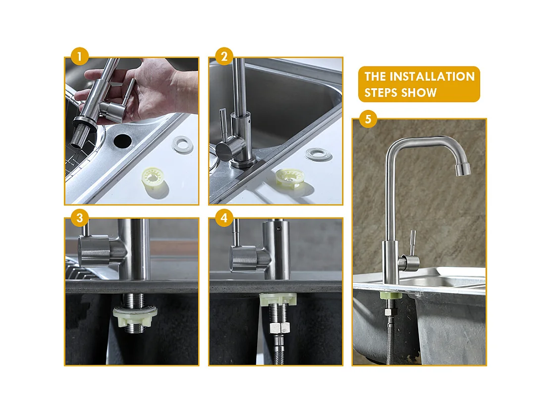 Grifo de Cocina de Agua Fría, Pivotante de 360°, Grifo de Fregadero de Agua Fría de Palanca Única, Acero Inoxidable- Cepillado