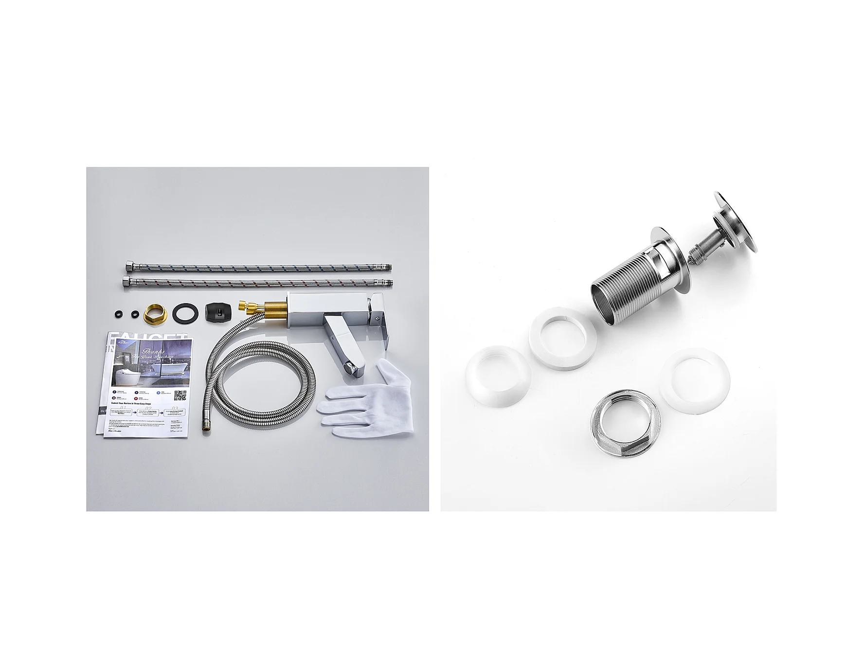 2PCS Auralum Max Grifo de Lavabo CAscade Cromado,Grifería de Baño con Agua Fría/Caliente,Mezclador Lavabo Inox 304 de Super Calidad