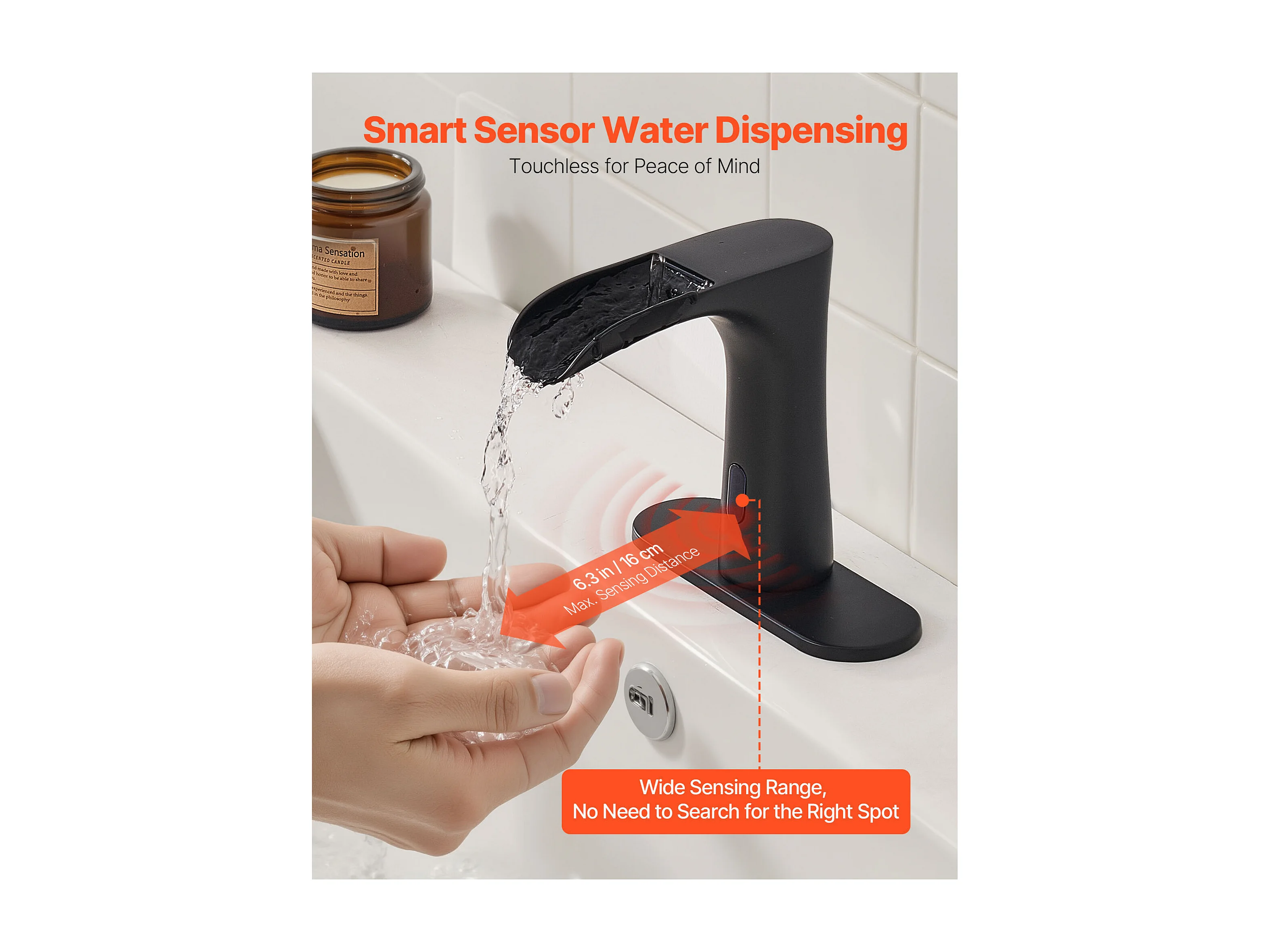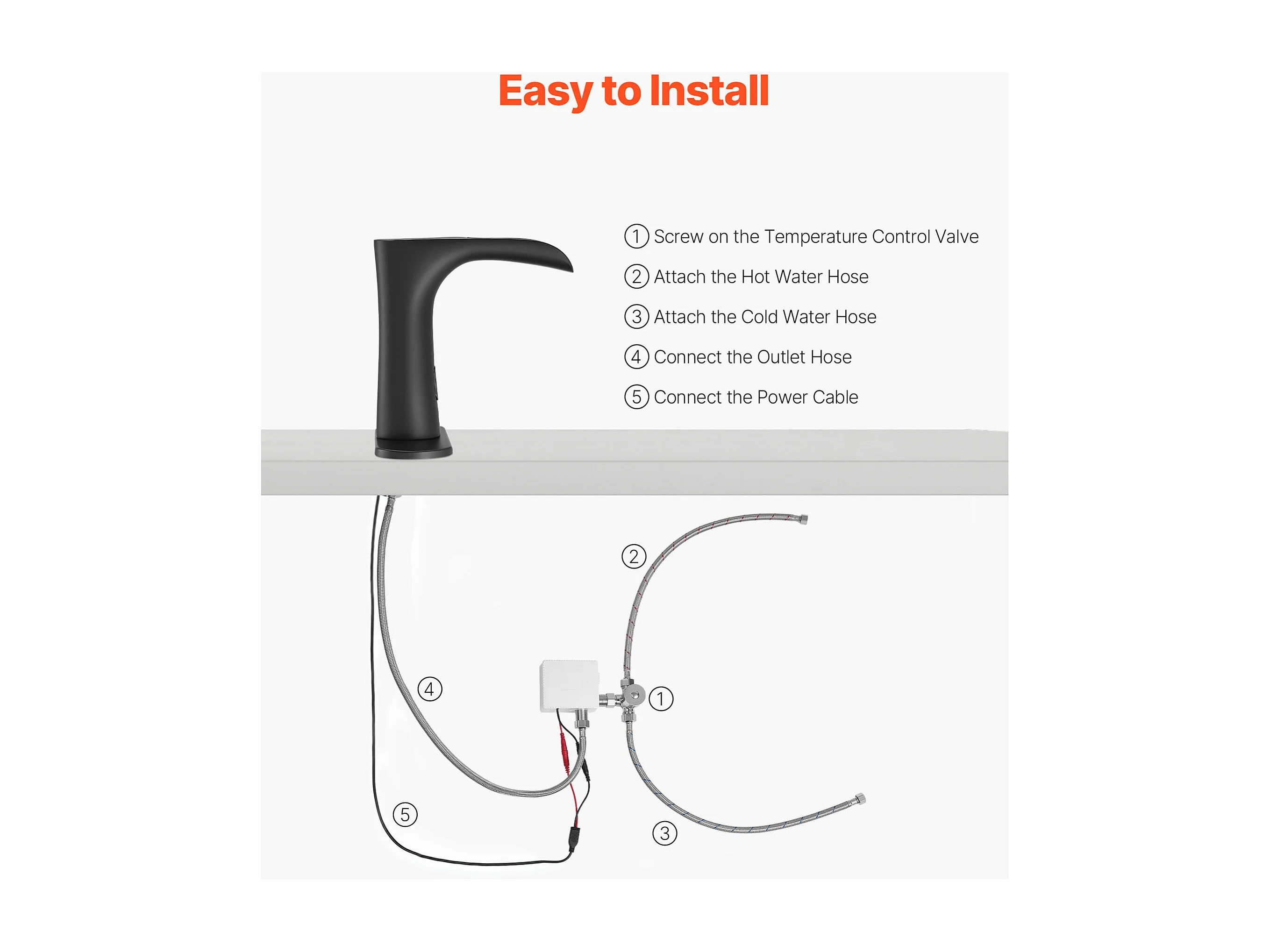 Grifo Mezclador Automático SucceBuy sin Contacto, Grifo con Sensor Electrónico de Lavabo, Mezclador de Agua Caliente y Fría Moderno para Tubo de 9,5 mm, Negro Mate