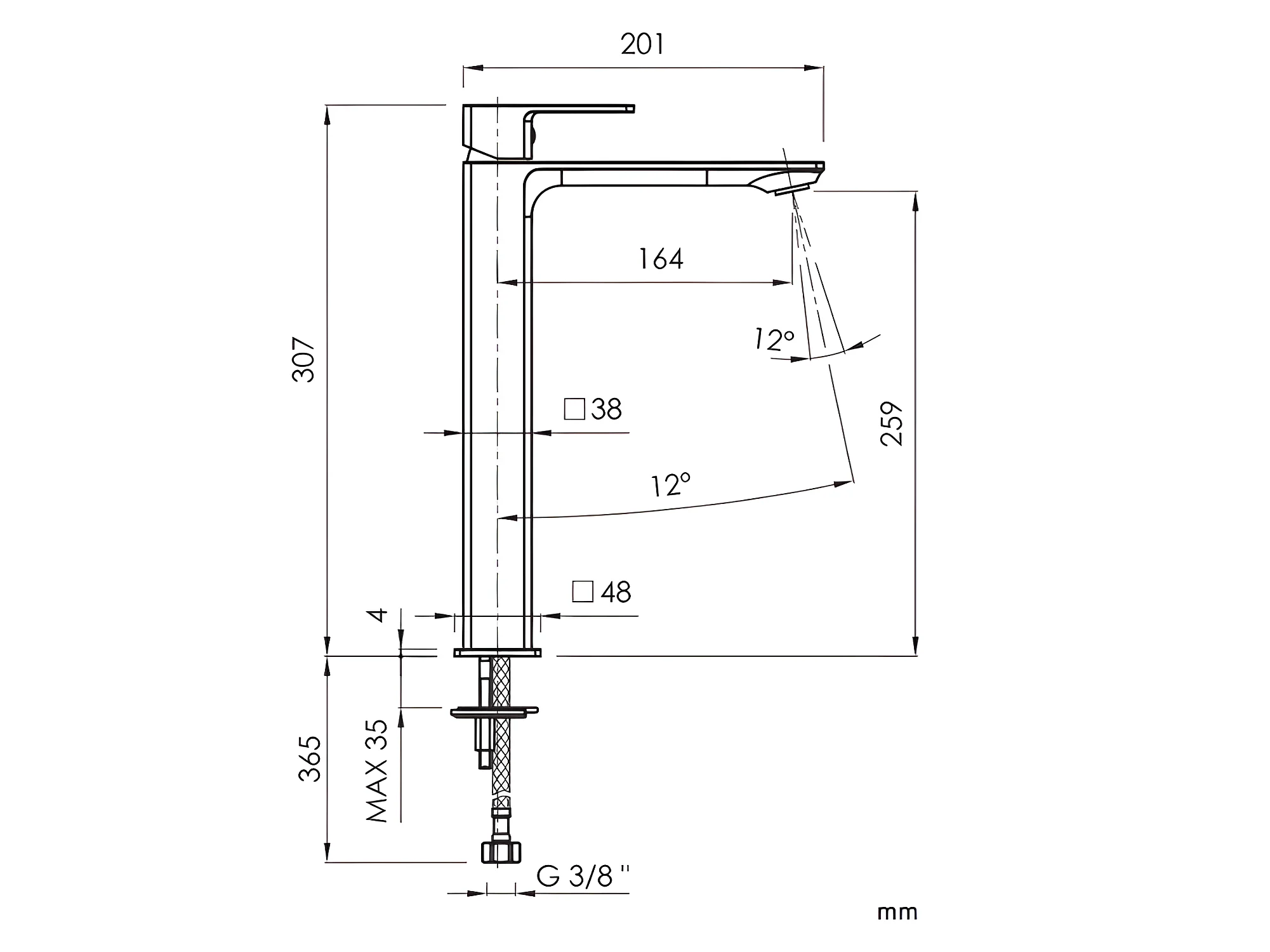 Grifo monomando alto para lavabo CUBO 2 colores