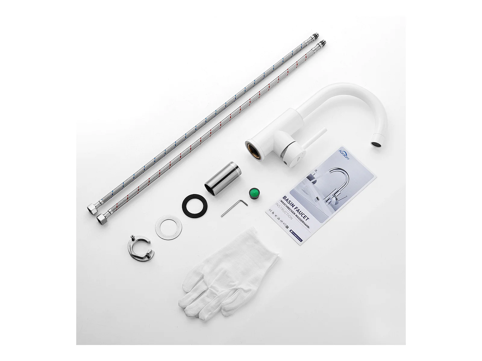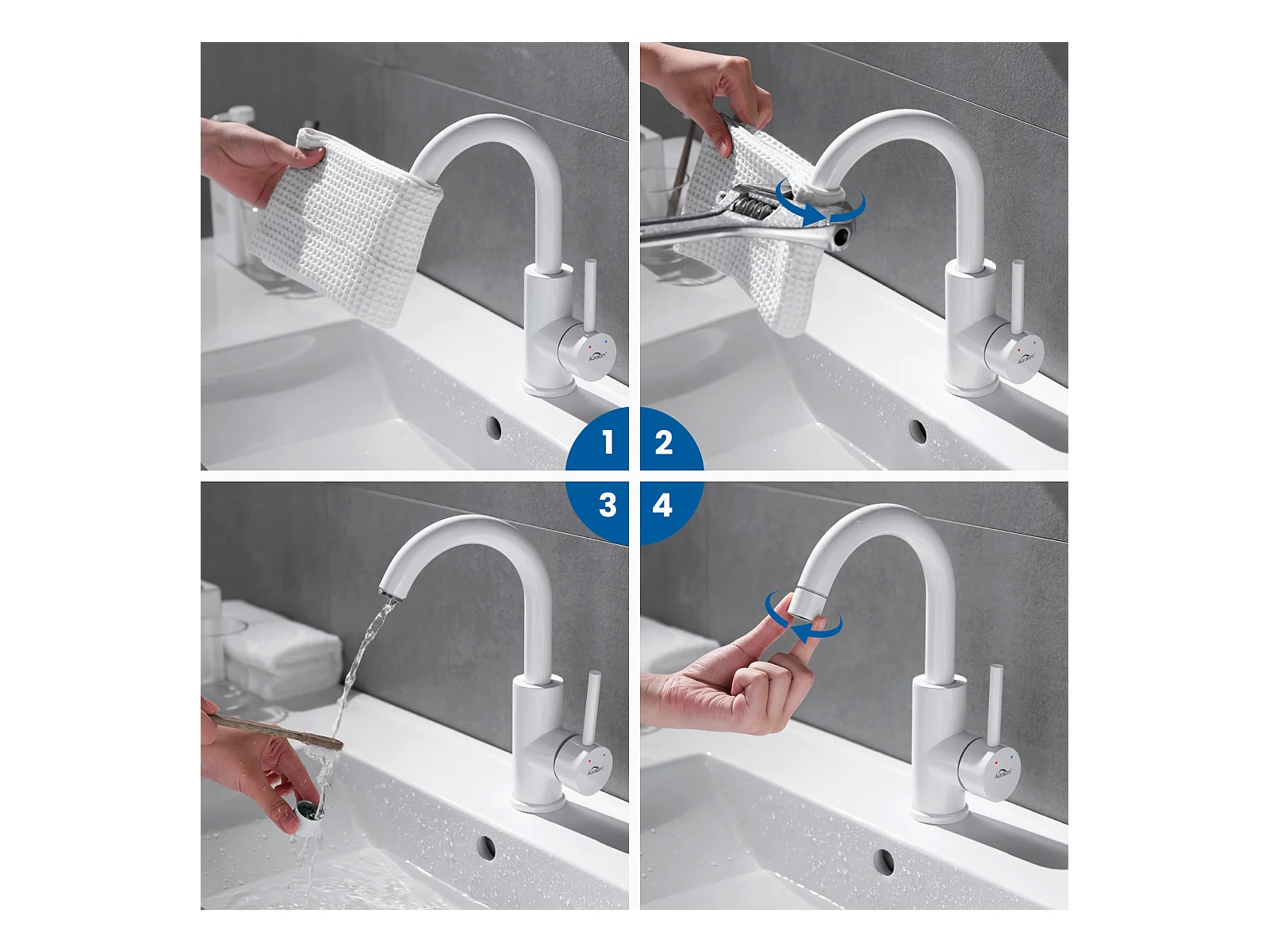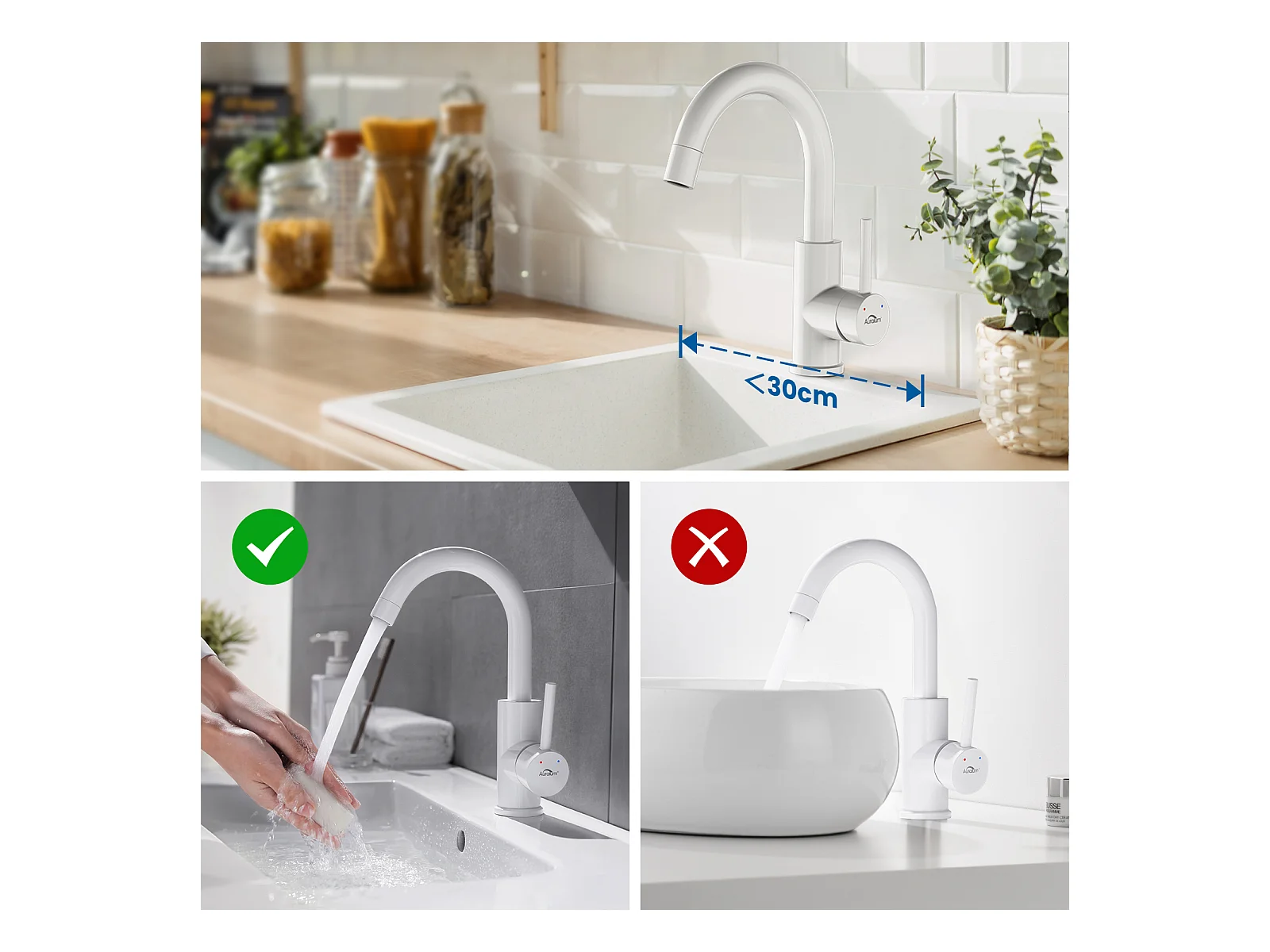 Mezclador de Lavabo, AuraLum Max Grifo Alto Giratorio de 360°, Grifo Monomando para Lavabo de Baño con Aireador Desmontable, Blanco,Modelo UE