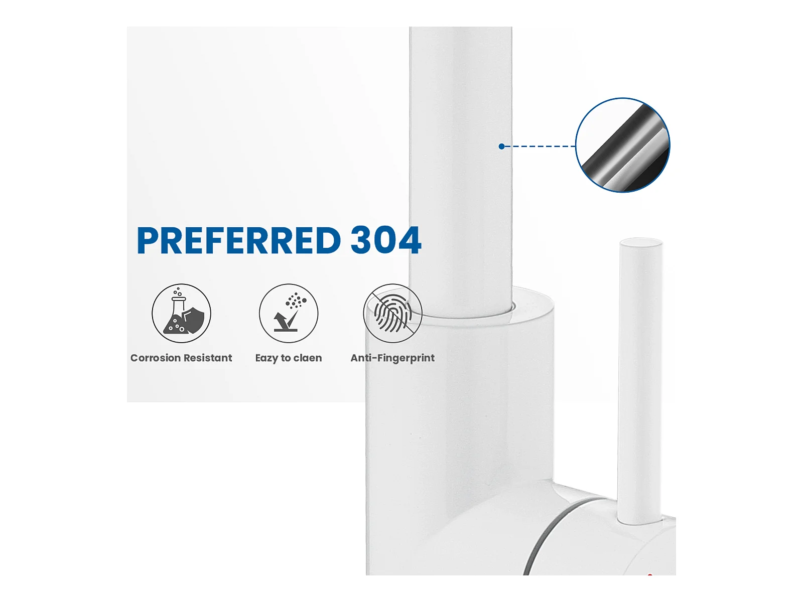 AURALUM MAX Grifo Lavabo Blanco Rotación 360°,Barbotador desmontable,Agua fría/caliente+Porta Cepillo Inodoro Acero Inoxidable Cepillo WC Pared