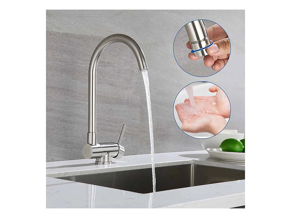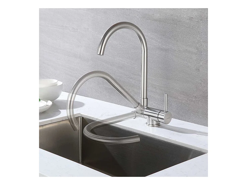GrifoCocina Plegable Mezclador Fregadero Giratorio 360° Grifería Inoxidable Cepillado con burbujeable,para Fregadero contra ventana,Modelo UE