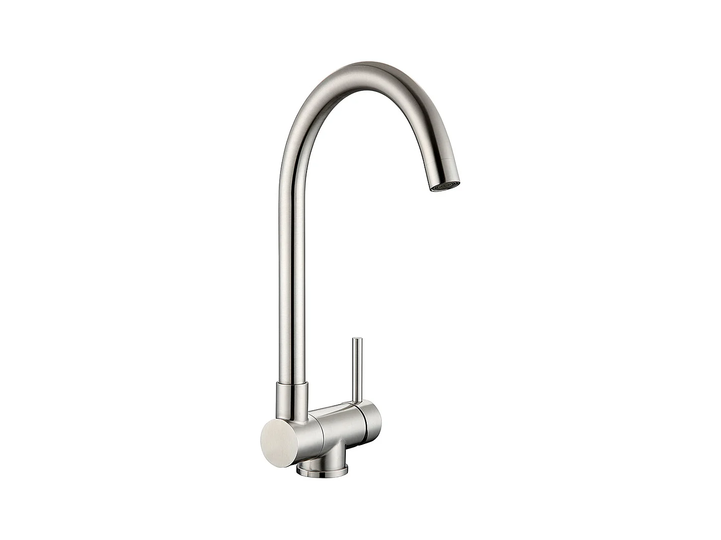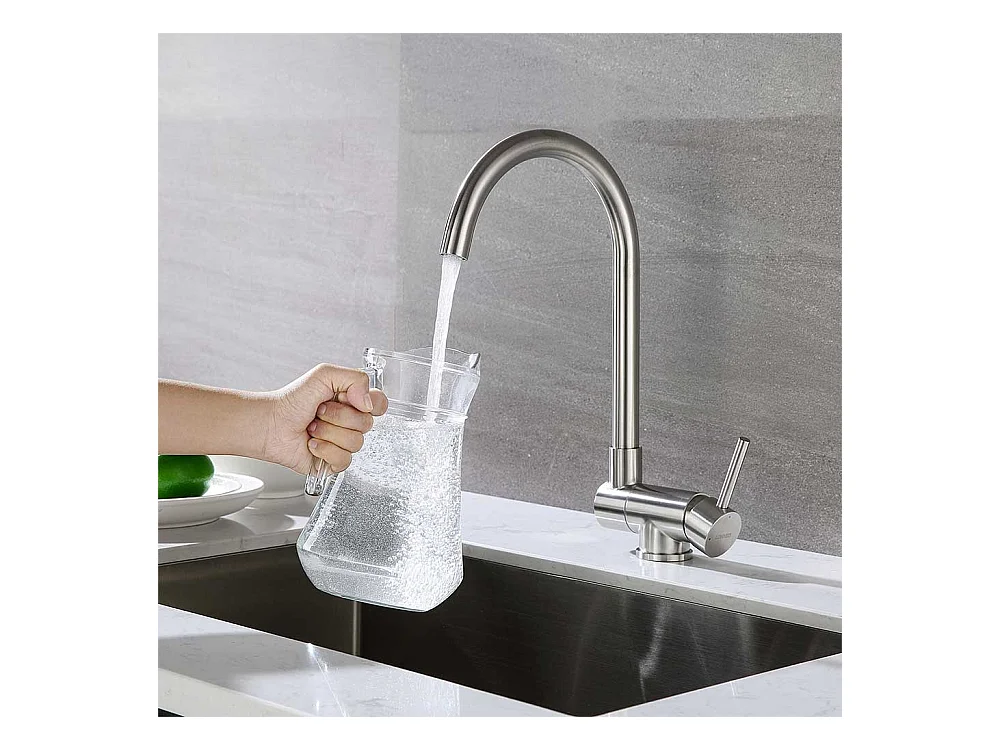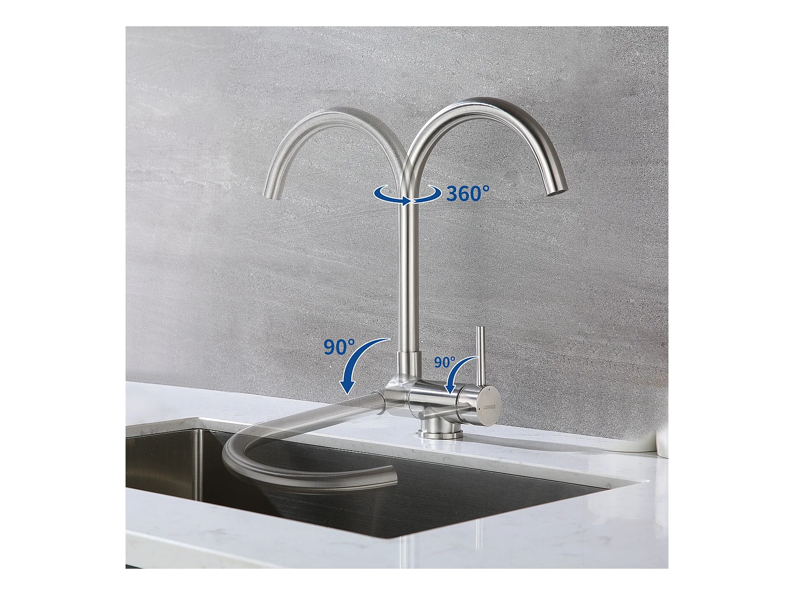 Grifo de Cocina de Agua Fría, Pivotante de 360°, Grifo de Fregadero de Agua Fría de Palanca Única, Acero Inoxidable- Cepillado