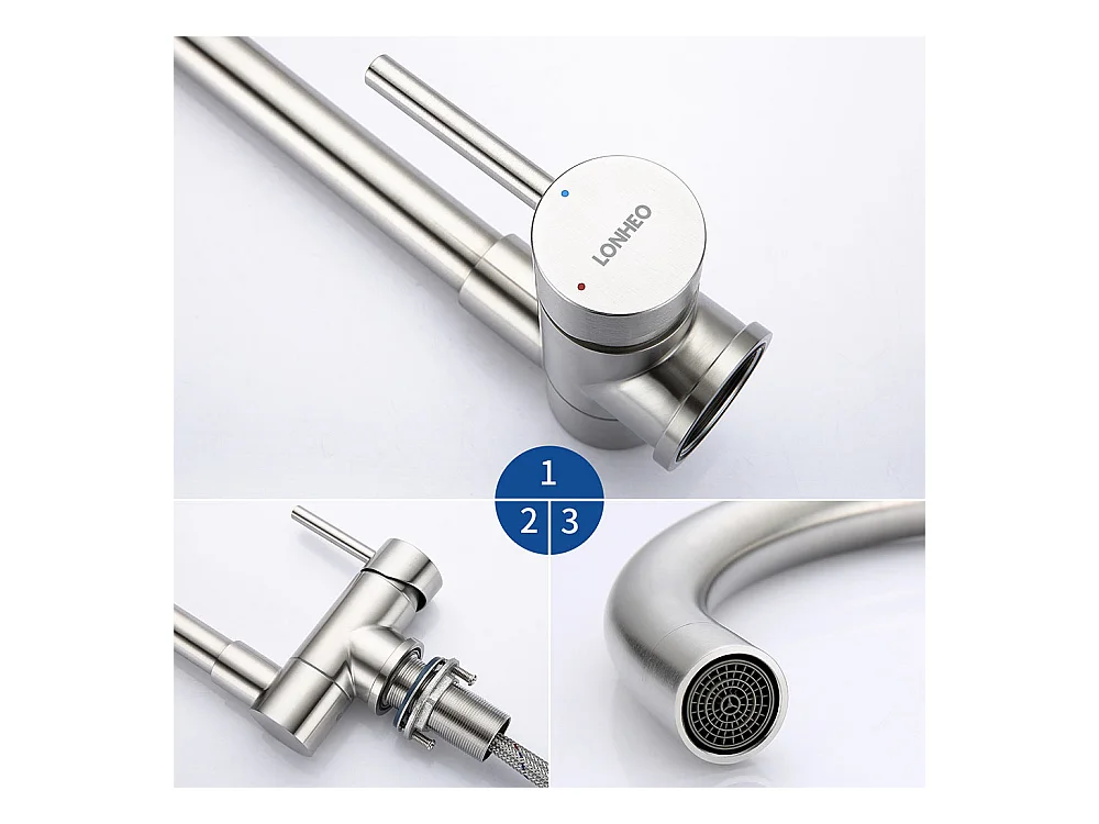 Lonheo Max 2pcs Mezclador Cocina Plegable Girante 360° Grifo Cocina con Mango Plegable Contra Ventana Grifo Fregadero Acero Inoxidable 304,Modelo UE