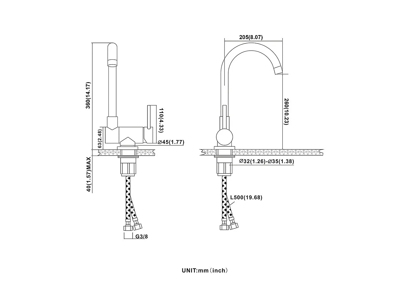 2PCS Mezclador Cocina Ducha Grifo Ducha Fregadero Extraíble de Dos Jets Mezclador Fregadero Coco Alto Giratorio 360° con Mamedor Demotable,Modelo UE