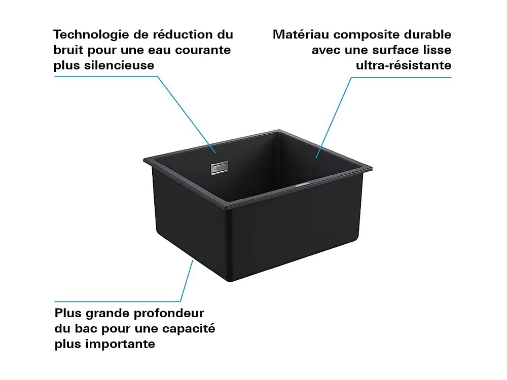 GROHE Fregadero de 1 seno 457 x 406 mm granito negro compuesto de cuarzo K700U
