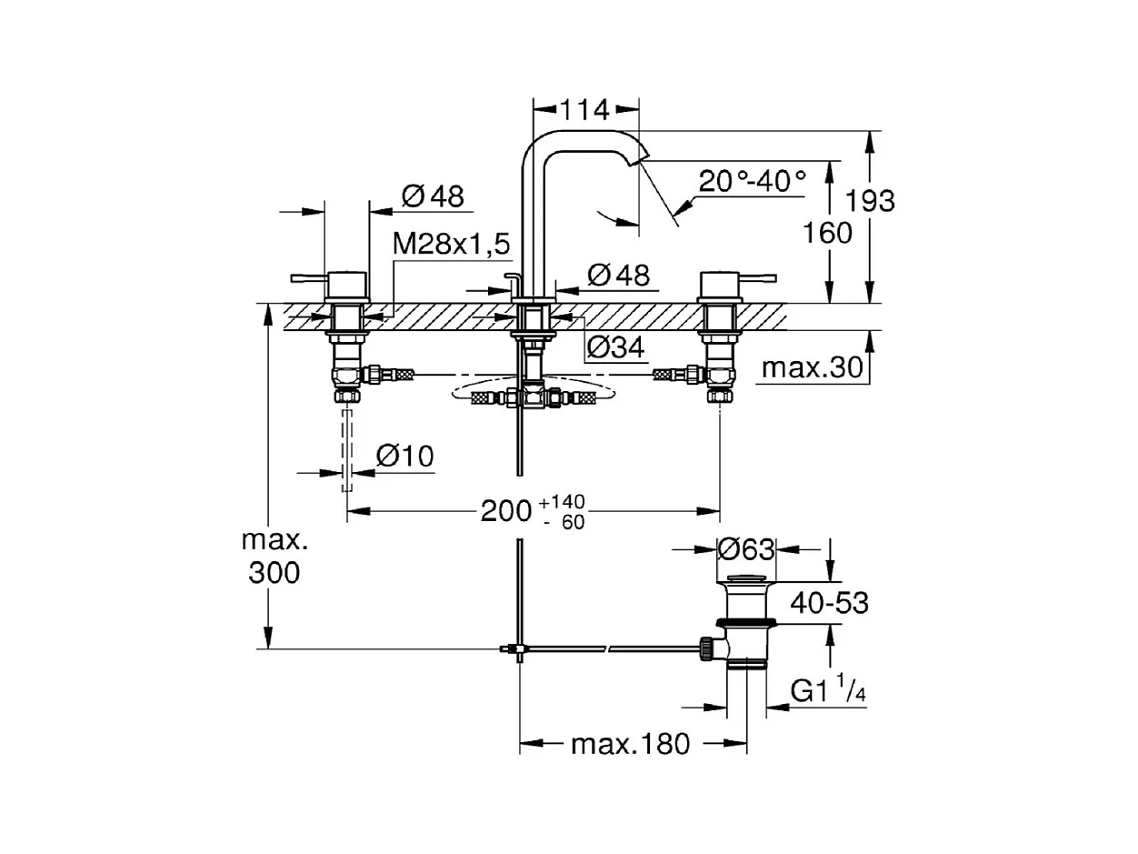 Grohe - Mezclador de lavabo con 3 orificios Essence Talla M