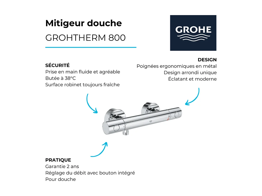 Grohe - Mezclador termostático Grohtherm 800 cromado con filtros integrados